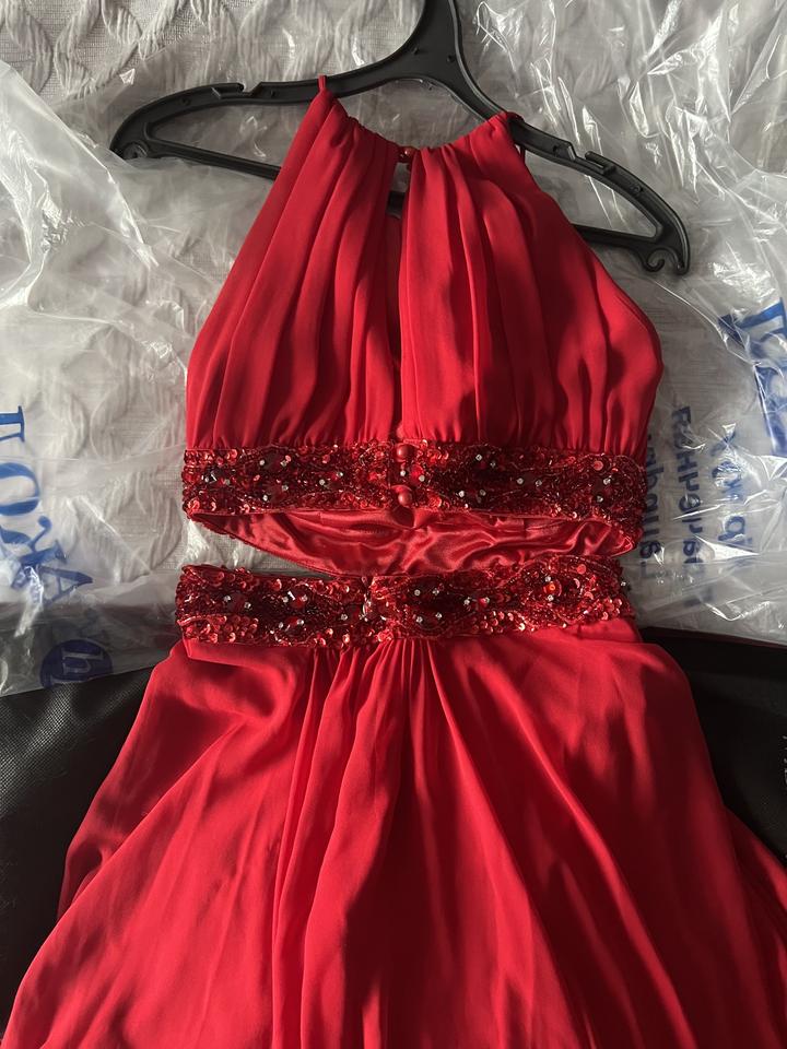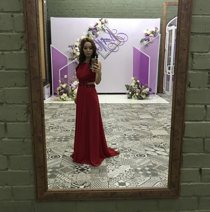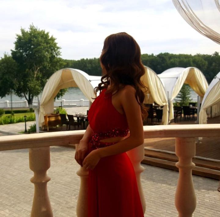 Вечернее платье со шлейфом с задней стороны, на талии разрез обшитый паетками и бисером. Цвет красный, после хим чистки, надевали раз на свадьбу. Размер s/xs подойдет. Артикул: 101918