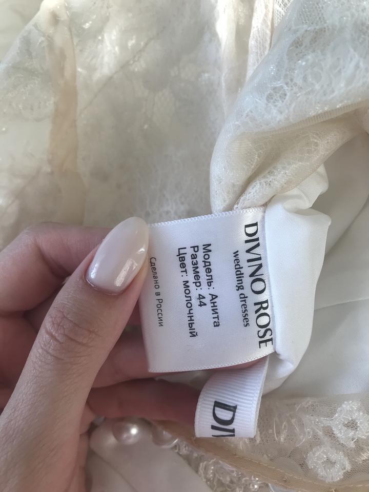 🌸 Продаю нежное свадебное платье Anita от бренда Divino Rose 🌸 В идеальном состоянии, надевала один раз на собственную свадьбу 🌸 После качественной химчистки 🌸 Размер 42-44 🌸 Цвет молочный,А-силуэт 🌸 На жемчужных пуговках,кружевной верх расшит бисером и жемчугом,низ из мерцающей ткани, имеется небольшой шлейф 🌸 Фирменный чехол, в подарок украшение для волос Артикул: 103166