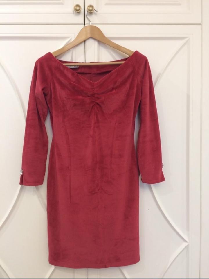 очень красивое платье из мягкого велюра, длина рукава 7/8, плечи немного открыты, длина выше колен Артикул: 111181