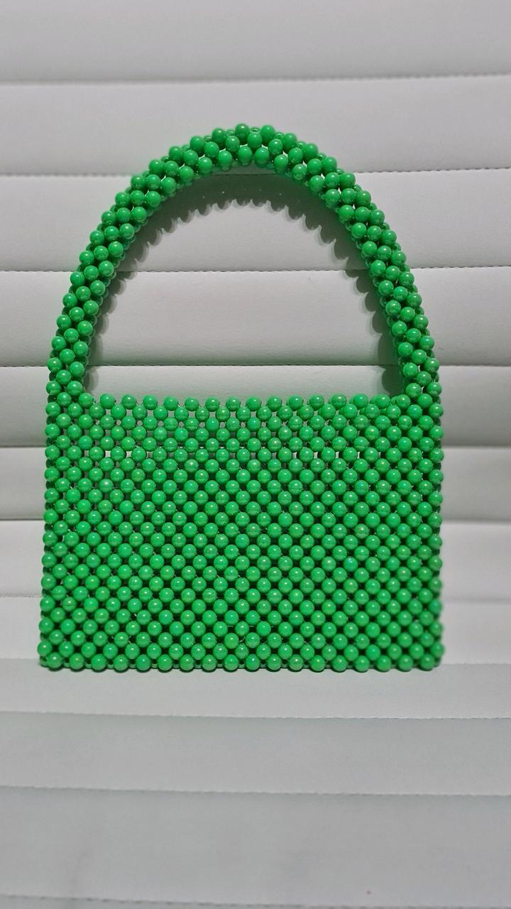 сумочка ручной работы из акриловых бус отличного качества. ширина сумки 21 см,высота 14 см,длина ручки 38 см,что позволяет надеть ее на плечо Артикул: 113026