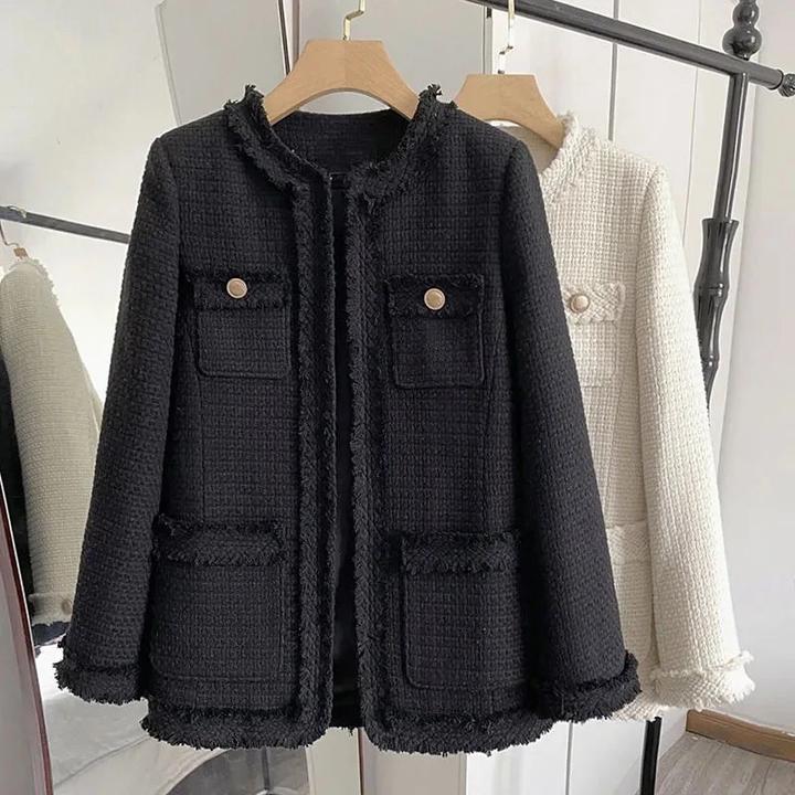 твидовый пиджак с круглым вырезом и бахромойS/M