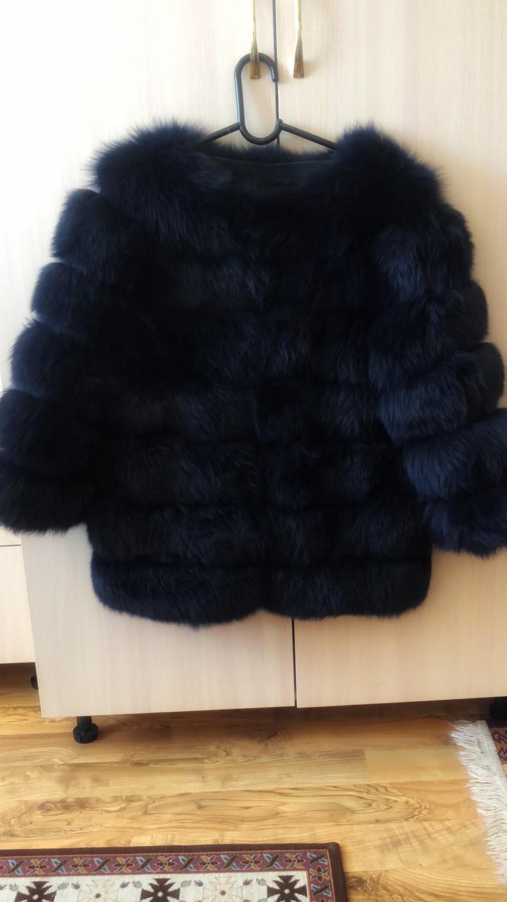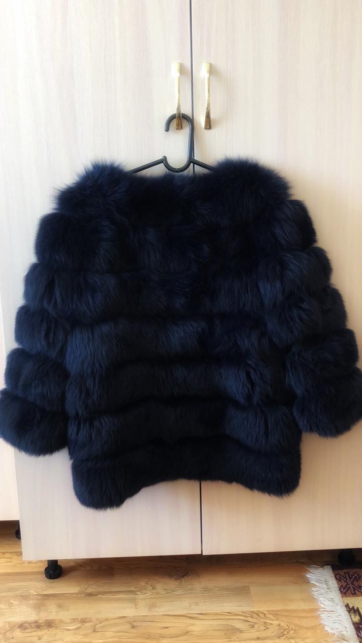 Темно-синяя песцовая шубаS 44-46