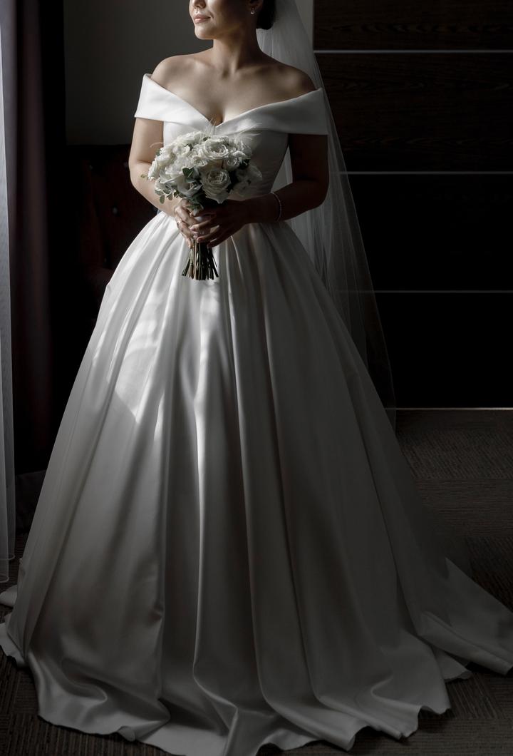 Продам шикарное свадебное платье от свадебного салона Emilia Sposa Очень лаконичное, сдержанное платье, выглядит «дорого-богато» Цвет жемчужно-белый, в жизни очень красивый, также есть карманы Платье идеально подойдет на ұзату, так как не пышное, и свадьбу, в подарок отдам подъюбник пятерка Размер 44, подойдет на XS-M, мой рост 156 Не ушивала, не подгоняла, все в оригинальном виде Платье в оригинальном чехле, есть бирки, после химчистки, идеально чистое, нет зацепок Производство: Испания Артикул: 147025