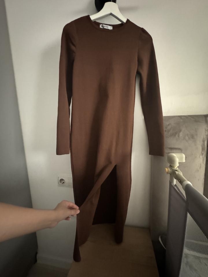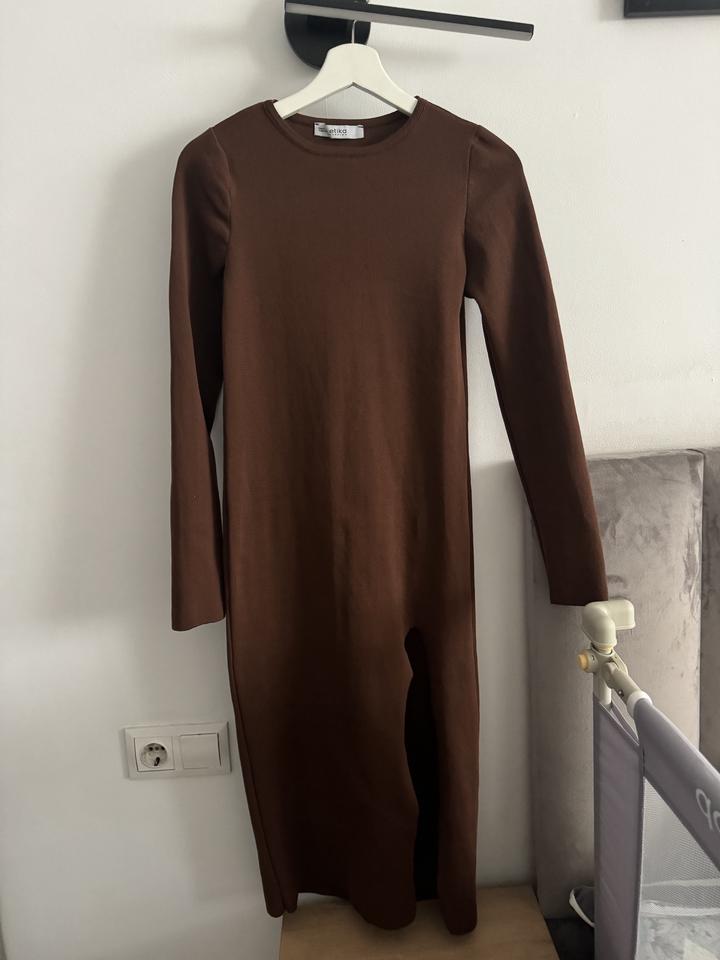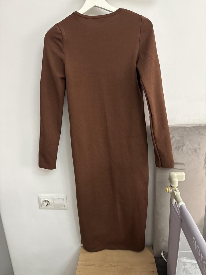 Платье турецкое трикотажное коричневого цвета, с вырезом. размер стандарт, подходит на с-м, тянется, не тонкое, подходит для беременных. Было надето один раз на фотосессию на 15 минут. Артикул: 148621