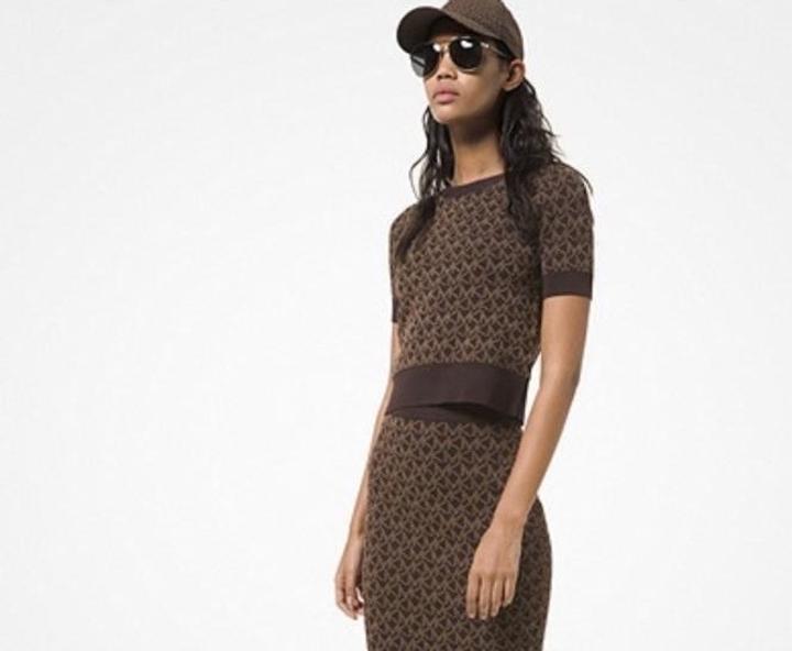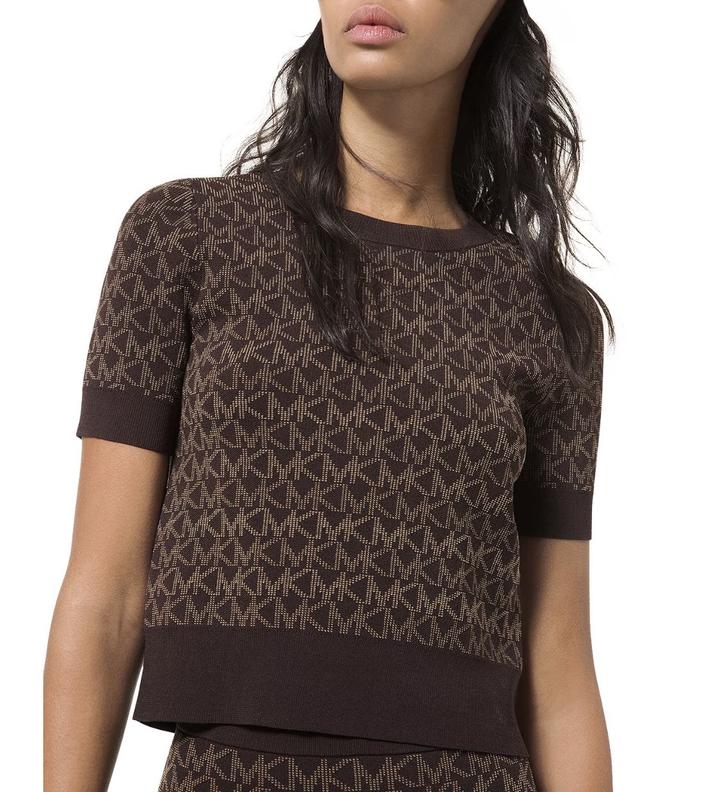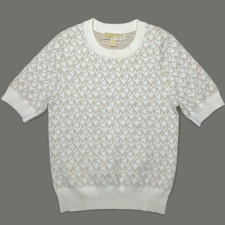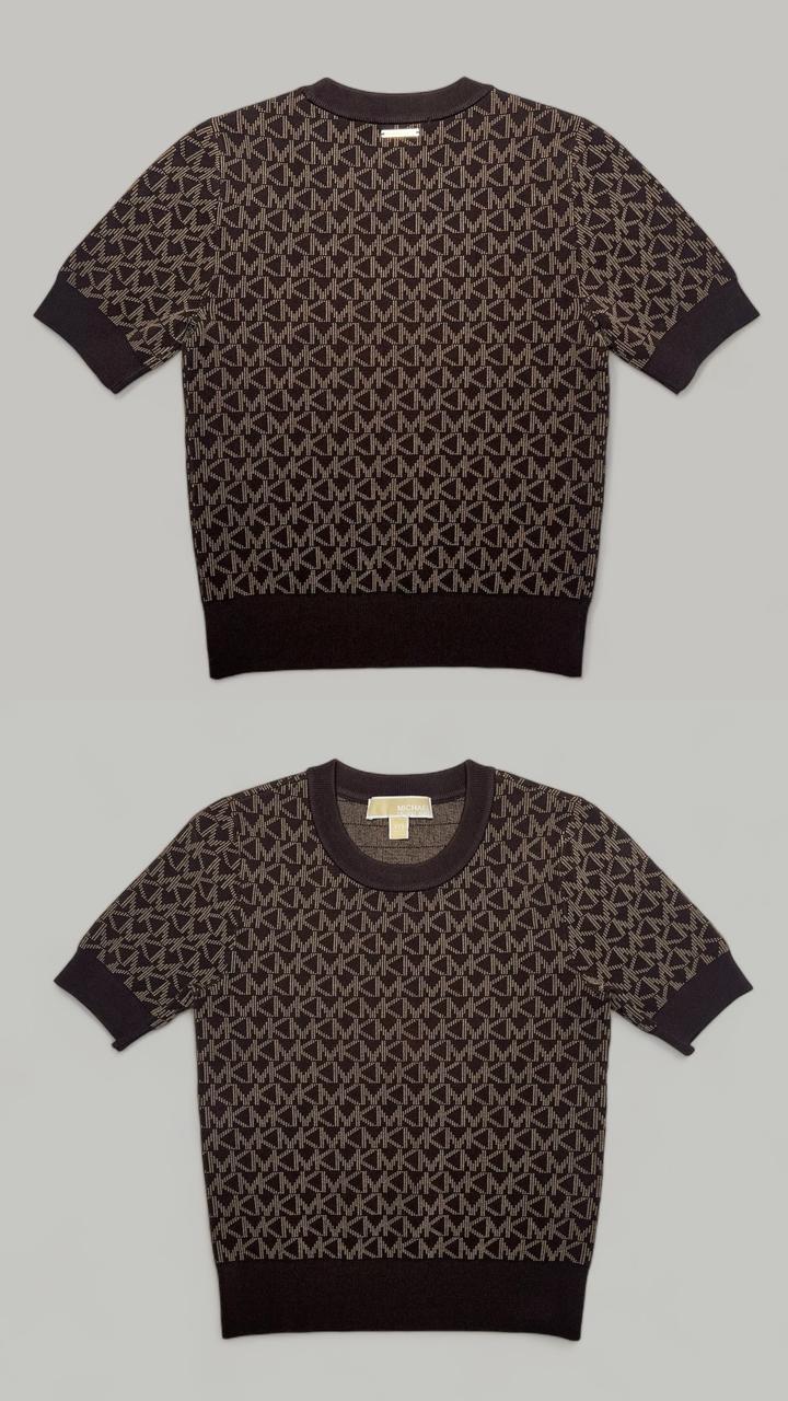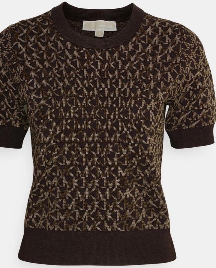 топ Michael Kors c короткими рукавами и логотипом p. XXS *подойдет на XS и S в коричневом и бежевом цвете Артикул: 154448
