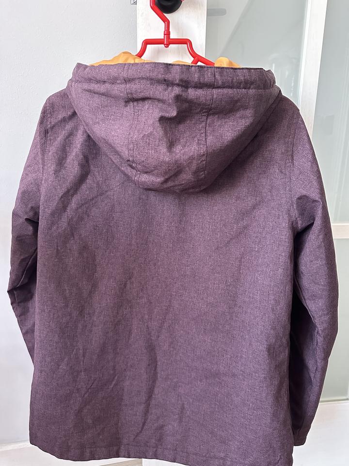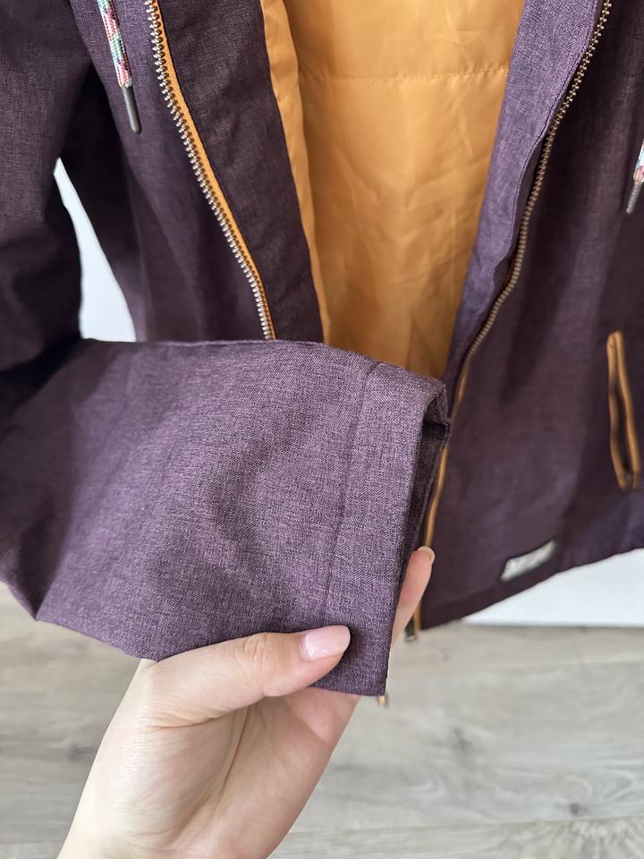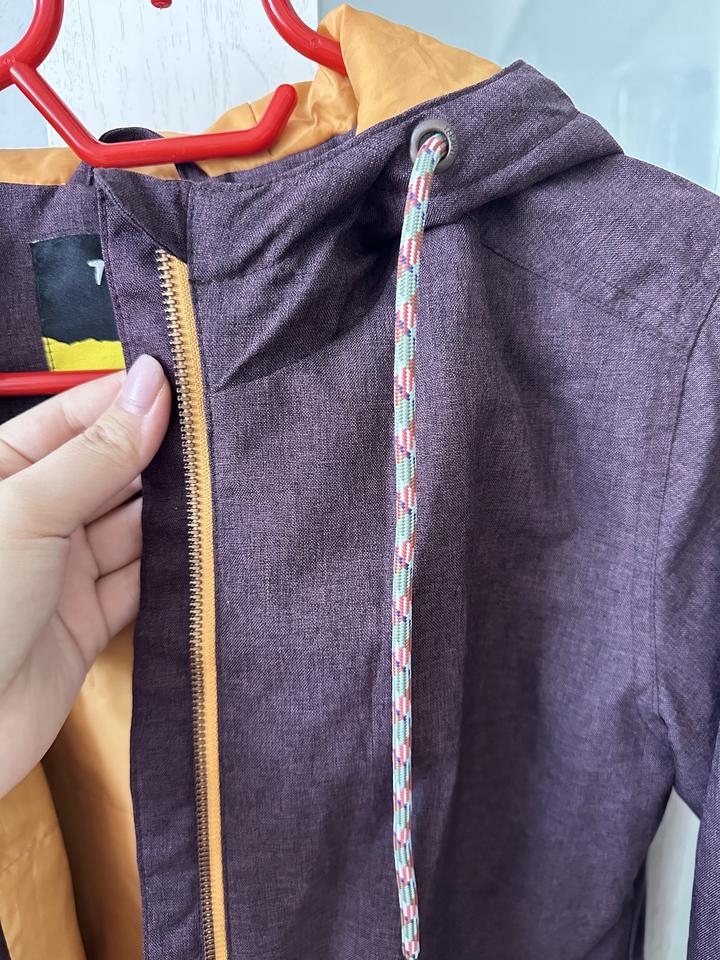 S-M размер с капюшоном. Не промокает, в идеальном состоянии. Носила пару раз на природу/в горы. Вообще не потеешь в ней и при этом теплая, не пропускает ветер. Покупала в спортмастере. Артикул: 157360