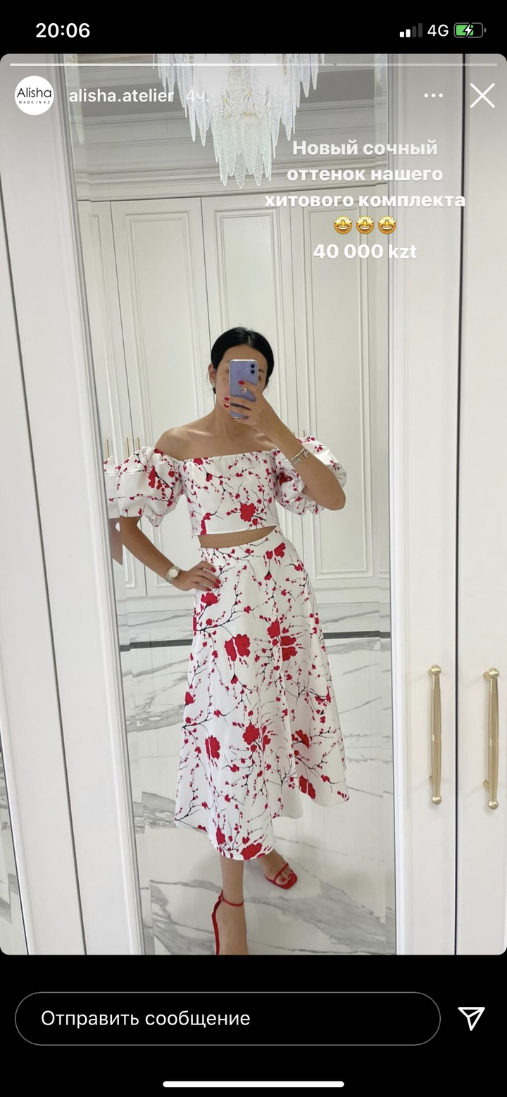 размер S, подойдут на XS, S, M. Юбка новая не носила, топ надевала 1 раз. Казахстанский бренд Alishe Atelier Артикул: 174754