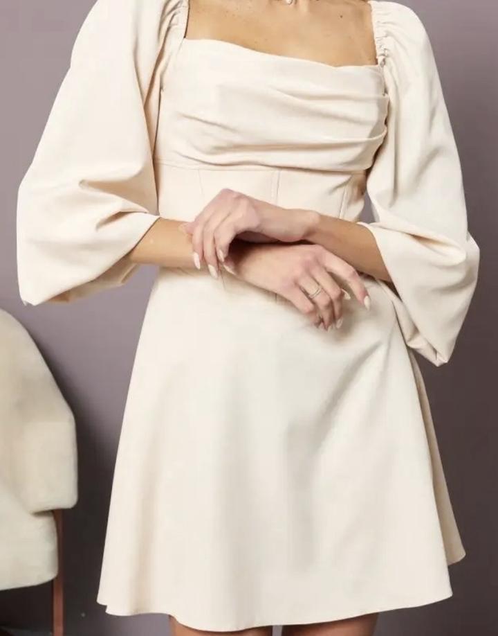 Отличное платье, нежного цвета. ткань атлас, за счёт завязок потрясающе подчёркивает фигуру, сборка на груди выглядит эффектно, рукава можно поднять и сделать до локтя и по мимо этого можно носить как со спущенными плачеками так и с поднятыми. Надела один раз на фотосессию. было куплено за 25 Артикул: 172549