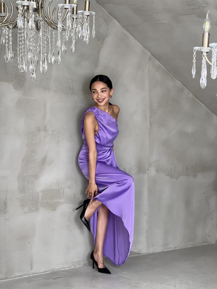 Шикарное легкое платье на одно плечо с эффектной деталью. Ткань под атлас. Производство Турция. Новое. Размер S/M Артикул: 172556