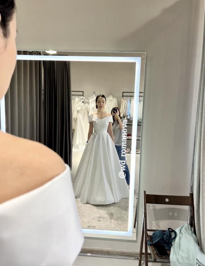 Продам свадебное атласное платье в стиле минимализм от ROMANOVA. Цена: 150,000 (покупала за 300,000) Размер: 42-44 (регулируется корсетом) В подарок ремешок, кольцо под платье Артикул: 176551