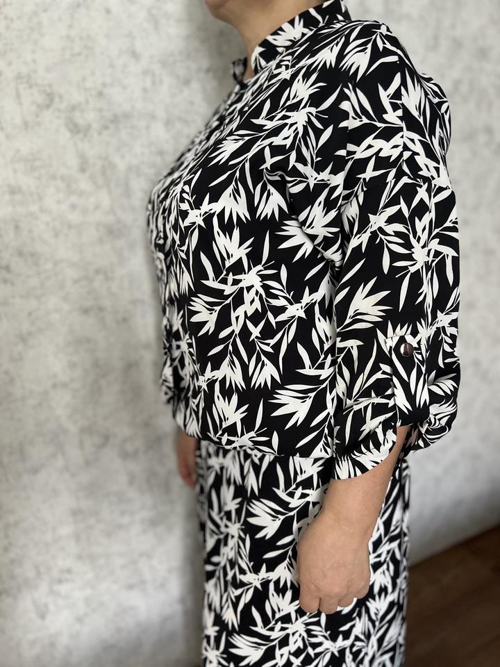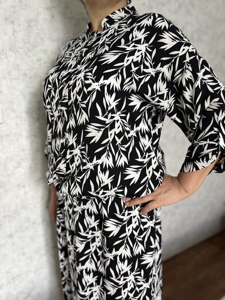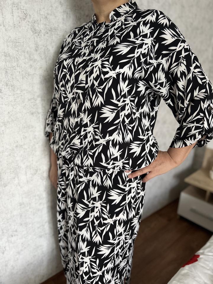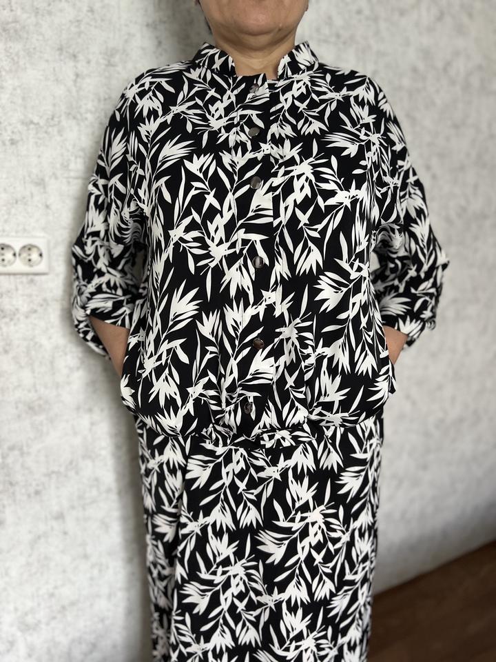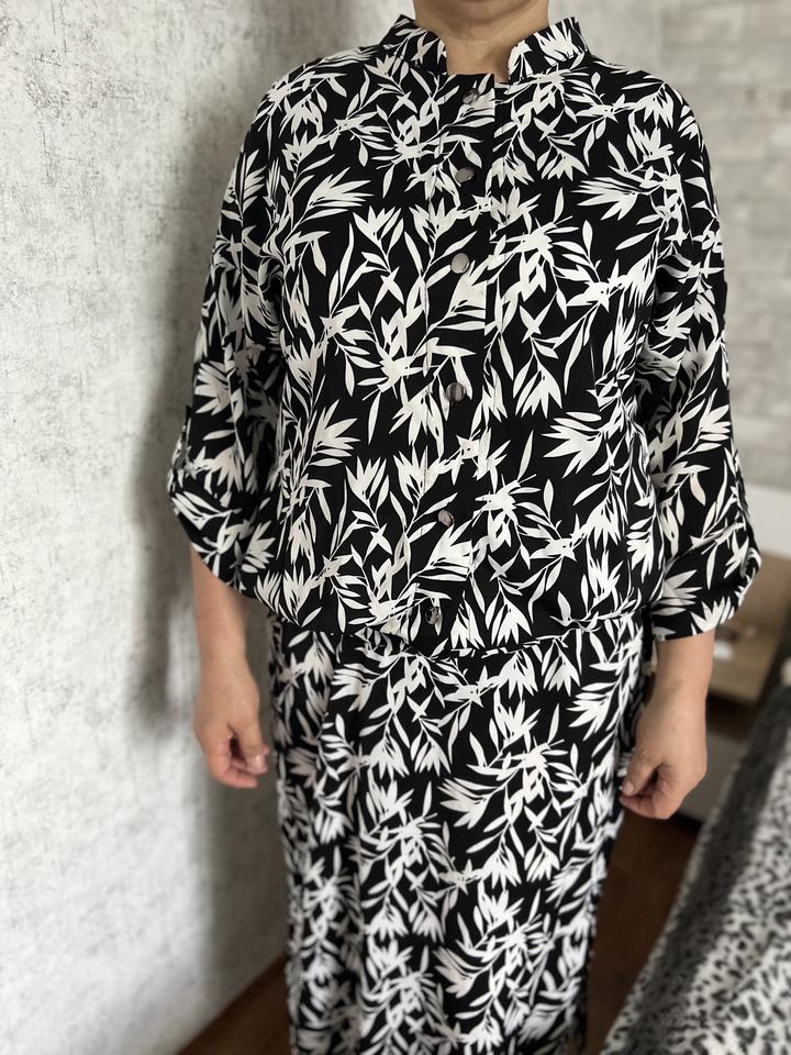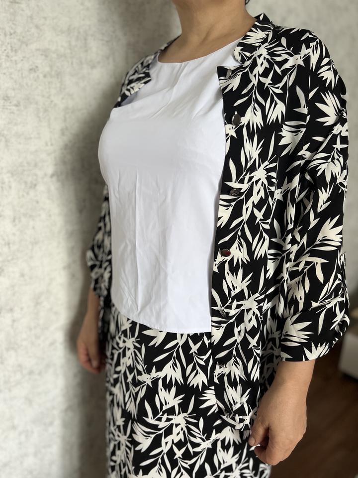 Костюм-тройка из накидки, белого топа и длинной юбки. Приятная к телу ткань. Красивый, модный принт. Размер 52. Носили всего один раз. Артикул: 177095