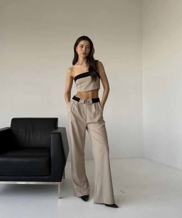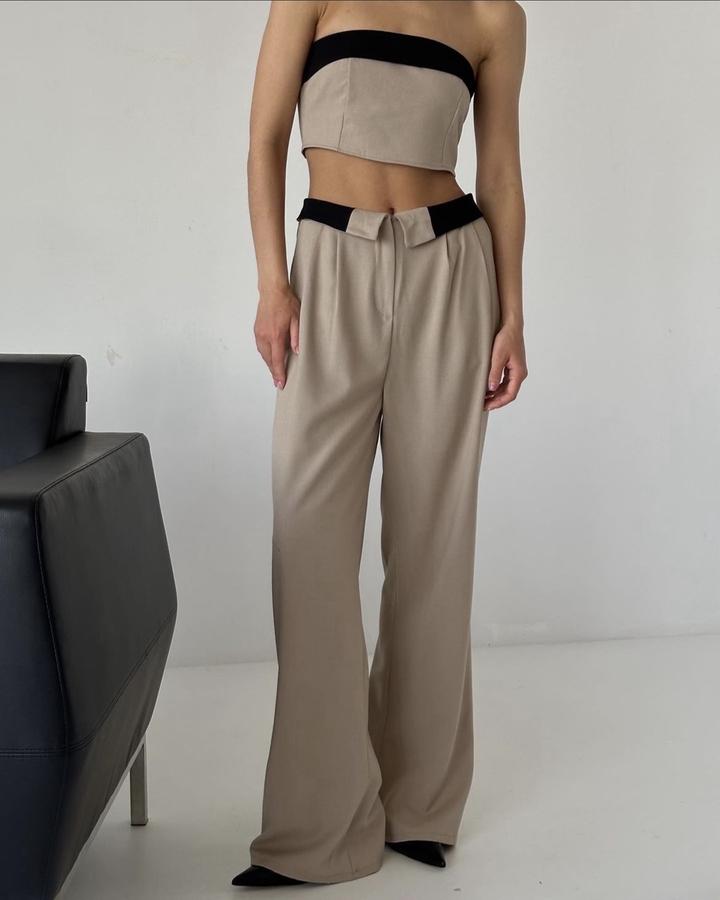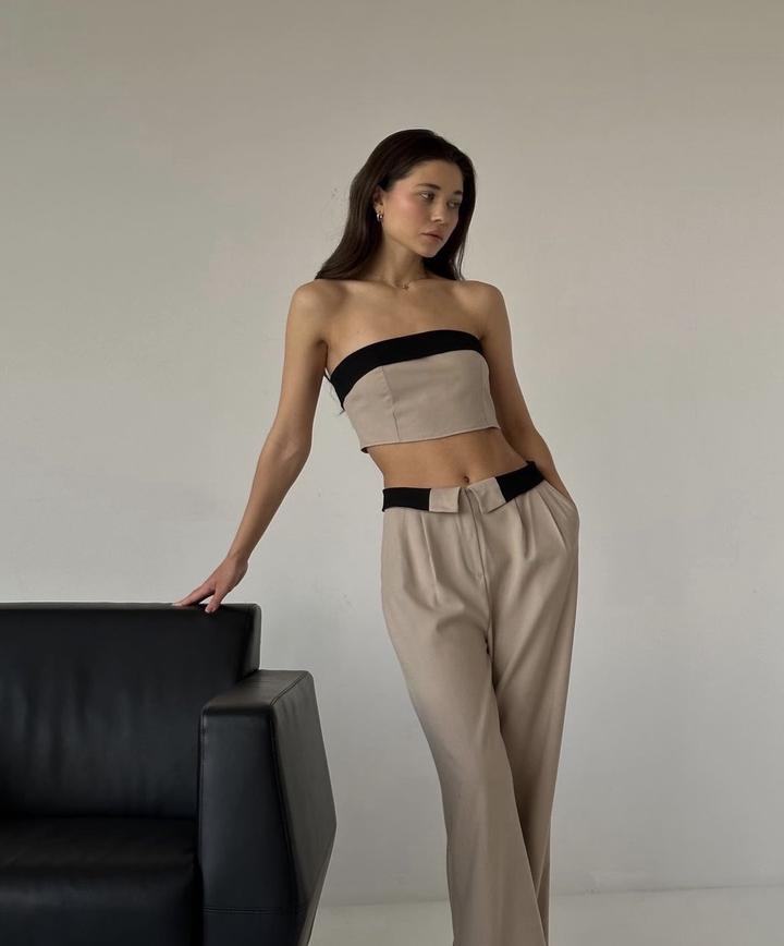Двойка, в отличном состоянии. Размер 42-44. На рост 162, с каблуком 7см в пол брюки. Топ на небольшую грудь. Бренд Nora. Материал лен. Артикул: 176797