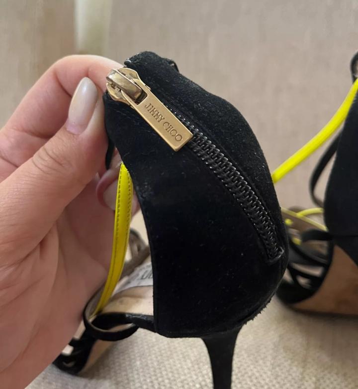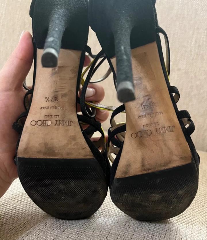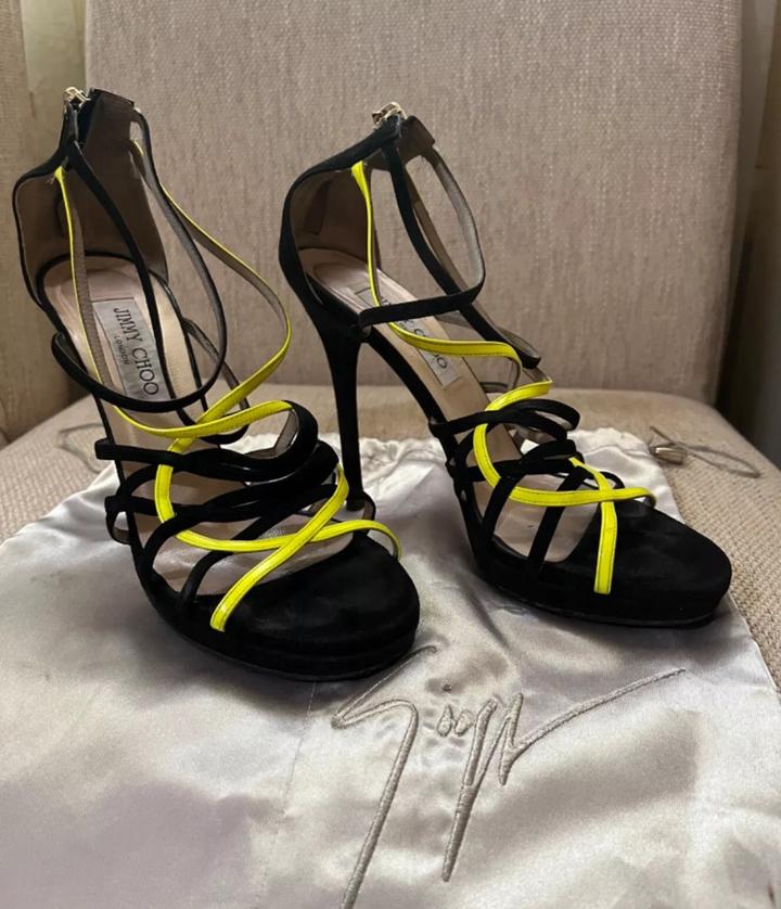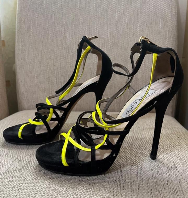 Босоножки на каблуке от Jimmy Choo черно-желтые37.5