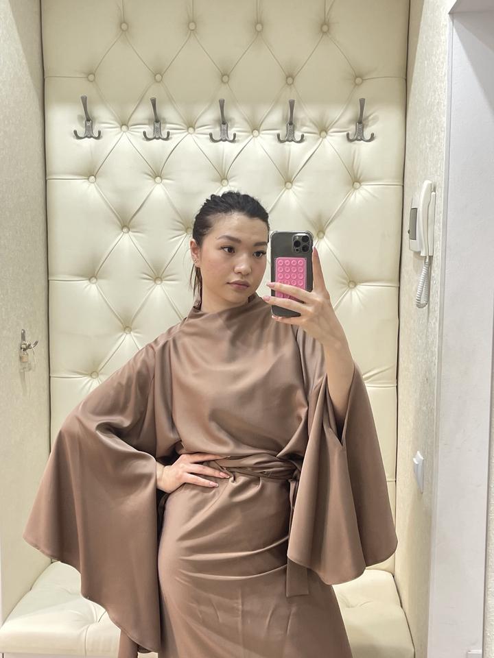 Вечерняя двойка, летящая, сшито на заказ, есть незначительный брак, в одном месте только немного распорото подойдет до размера Л, рост до -1+7### ### ## ##д Астана Артикул: 178336