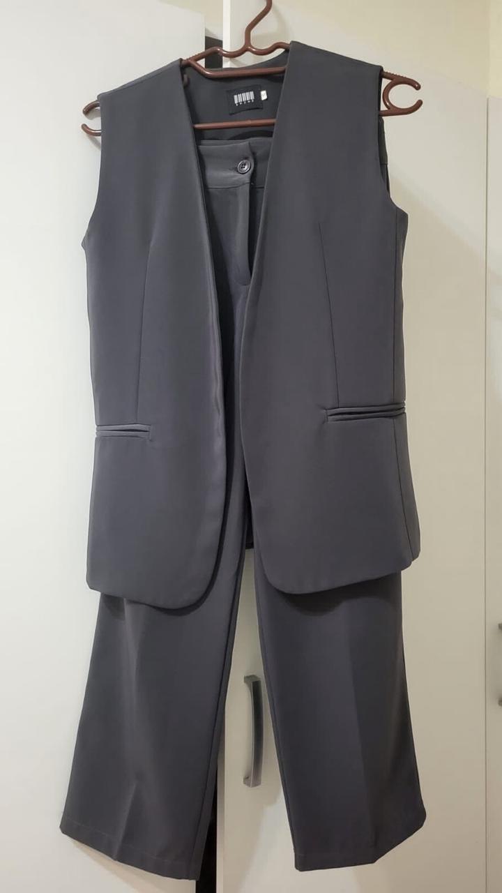 Продам брючный костюм:жилетка и брюки. цвет мокрый асфальт, размер S. при росте 160 брюки до щиколоток. состояние идеальное. производство Корея. Артикул: 184953