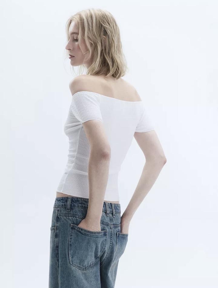 блузка белая с открытыми плечами фактурная Артикул: 189696
