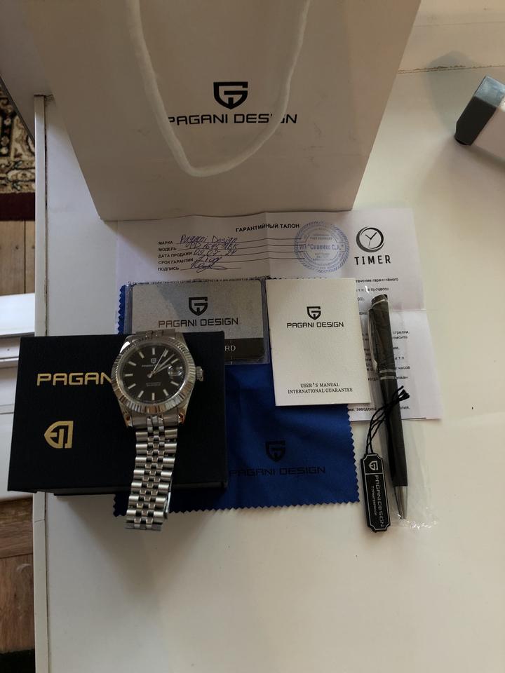 Pagani Design диаметр часов-41 мм, на руке смотрится аккуратно и очень презентабельно японский механизм, нержавеющая сталь, сапфировое стекло, новая без бирки, надевался всего лишь один раз на свадьбу. в комплекте: гарантия, документы, коробка, пакет, ручка в подарок Артикул: 189006
