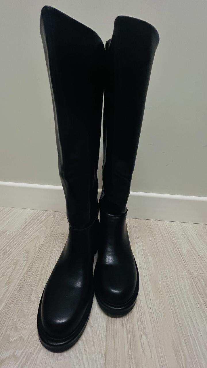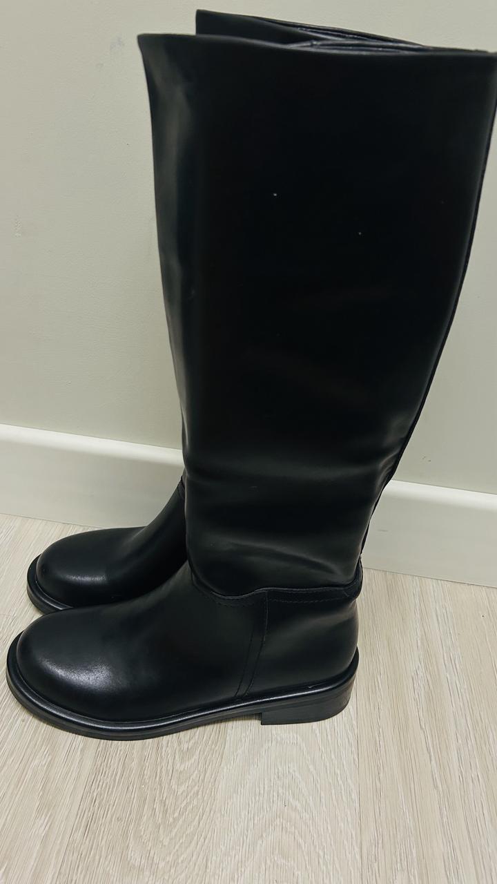 Высокие сапоги без замка,без утеплителя.Аналог модели из Zara. Кожа.Обуты 1 раз,ошиблась размером,больше мерят на стопу 25.3, подойдут на стопу до 25.7 см Артикул: 188136