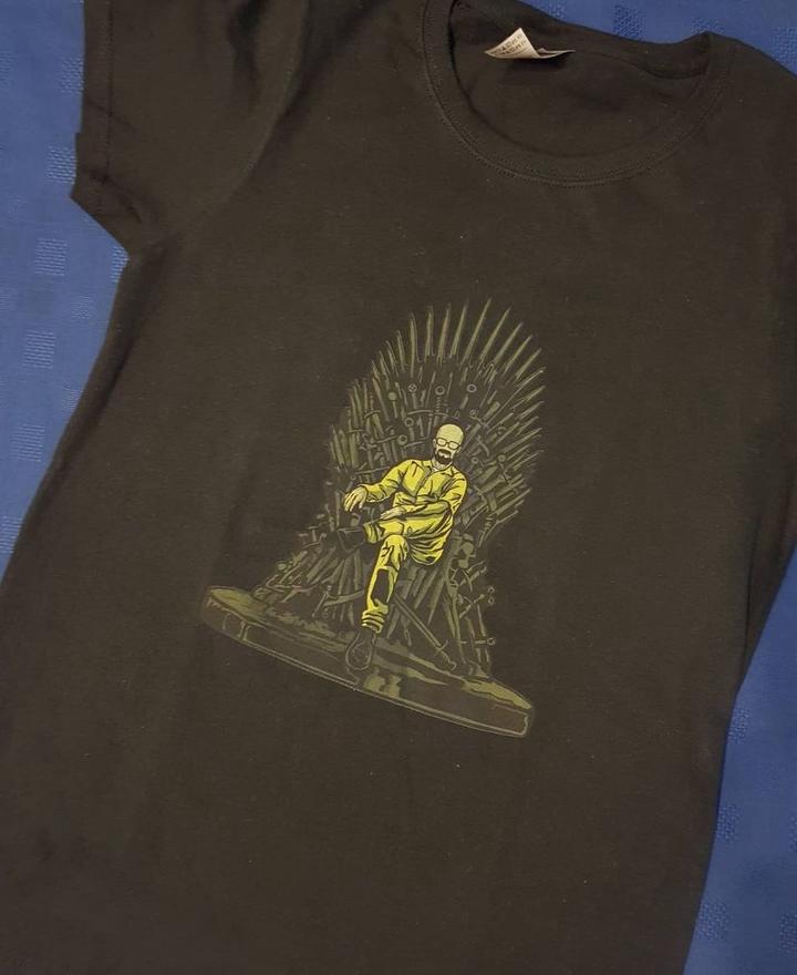 Высококачественный стойкий принт для фанатов Во все тяжкие и Игры Престолов, новая черная женская футболка в размере M. Красиво сидит по фигуре. Обхват - 94 см. Футболки привезены с Америки, хлопок высокого качества, принт технология dtg, то есть это НЕ пленка, краска впечатана в футболку, закреплена под высокими температурами. Стойкий принт. Футболка новая, себестоимость производства 5.800 тг, продаю дешево в связи с закрытием производства. Артикул: 192330