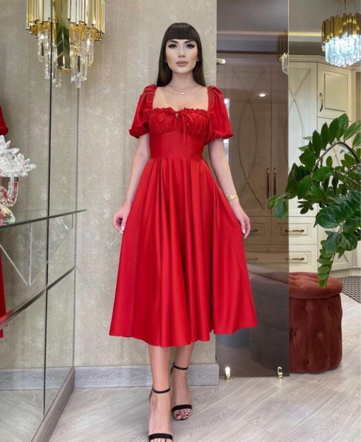 Платье красное крестьянкаL