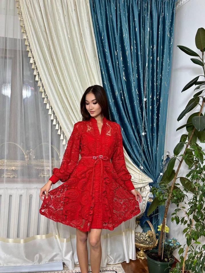 красное платья короткое. из плотной гипюра. ремень есть Артикул: 197255