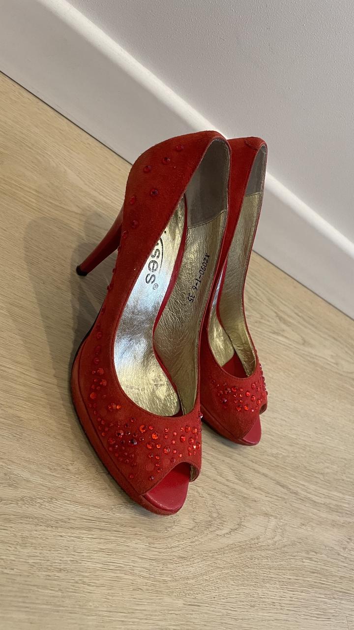 Замшевые туфли из натуральный кожи со стразами Swarovski, размер 35. Надевались пару раз на мероприятия. Артикул: 200601