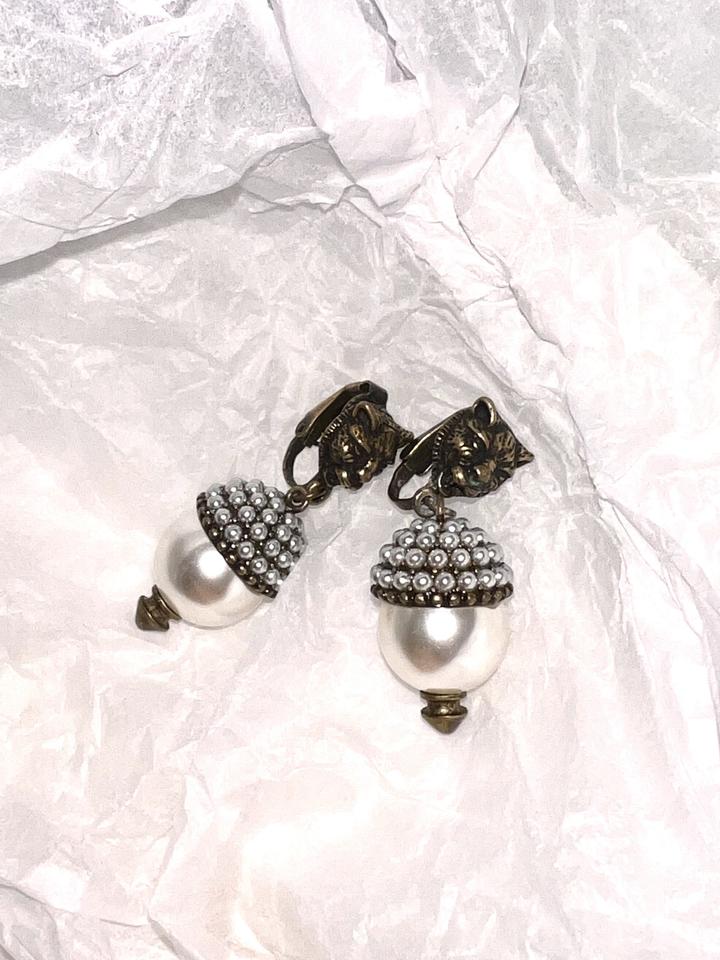 винтаж, искусственный жемчуг точно не знаю, оригинал или нет, так как очень давний подарок сзади есть маркировка Gucci клипсы крепко прилегают к ушам фирменный мешок пакет и тд отсутствует Артикул: 200825