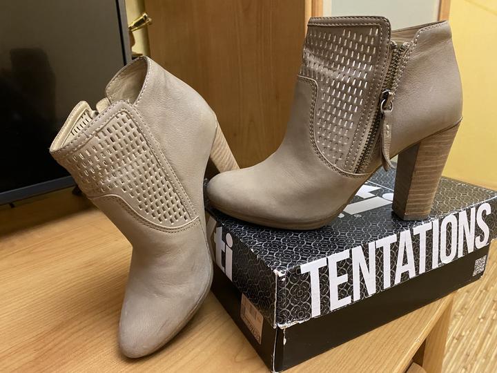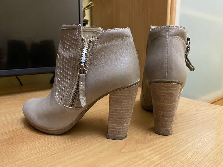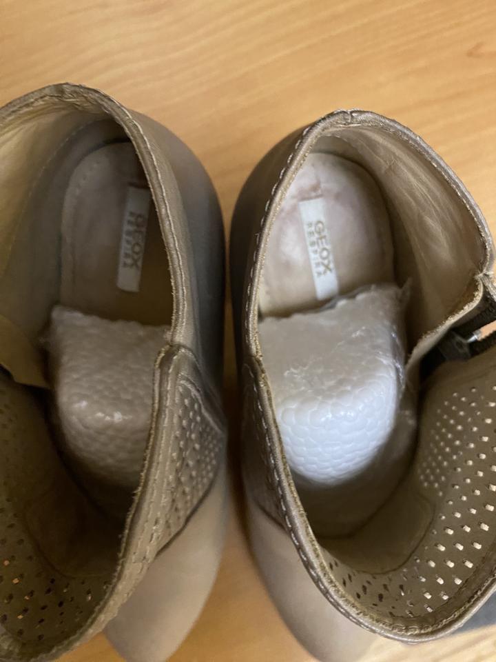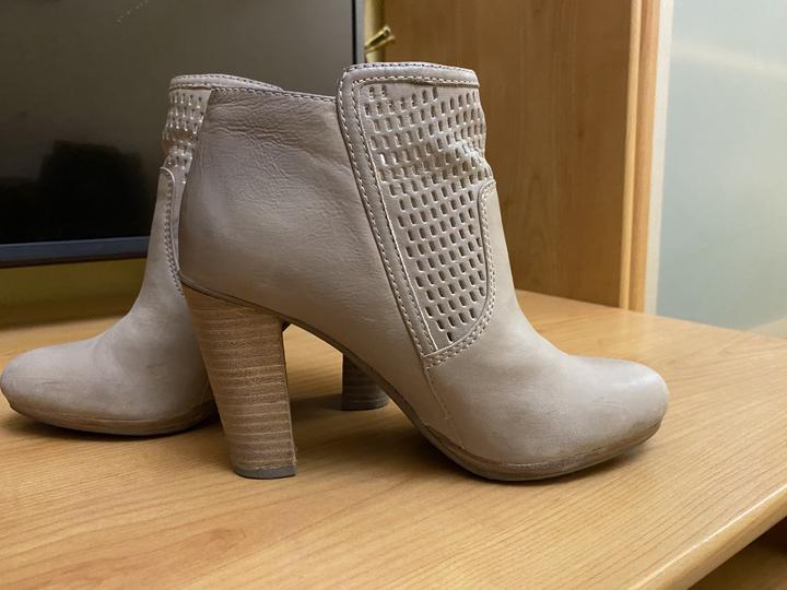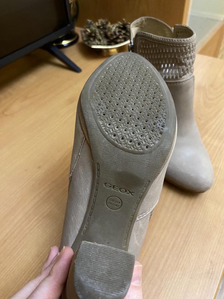 ботильоны демисезонные от итальянского бренда Geox, бежевые, натуральная кожа. высота каблука 7,5 см. надевались один раз. на стопу 23-23,5 см. Артикул: 200869