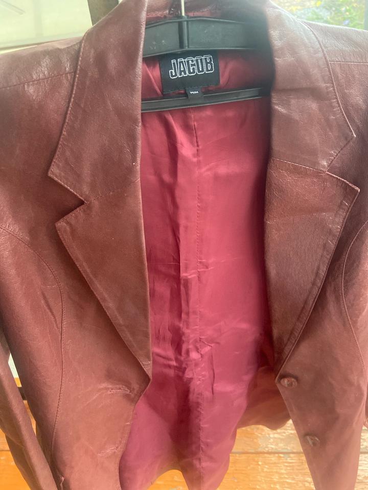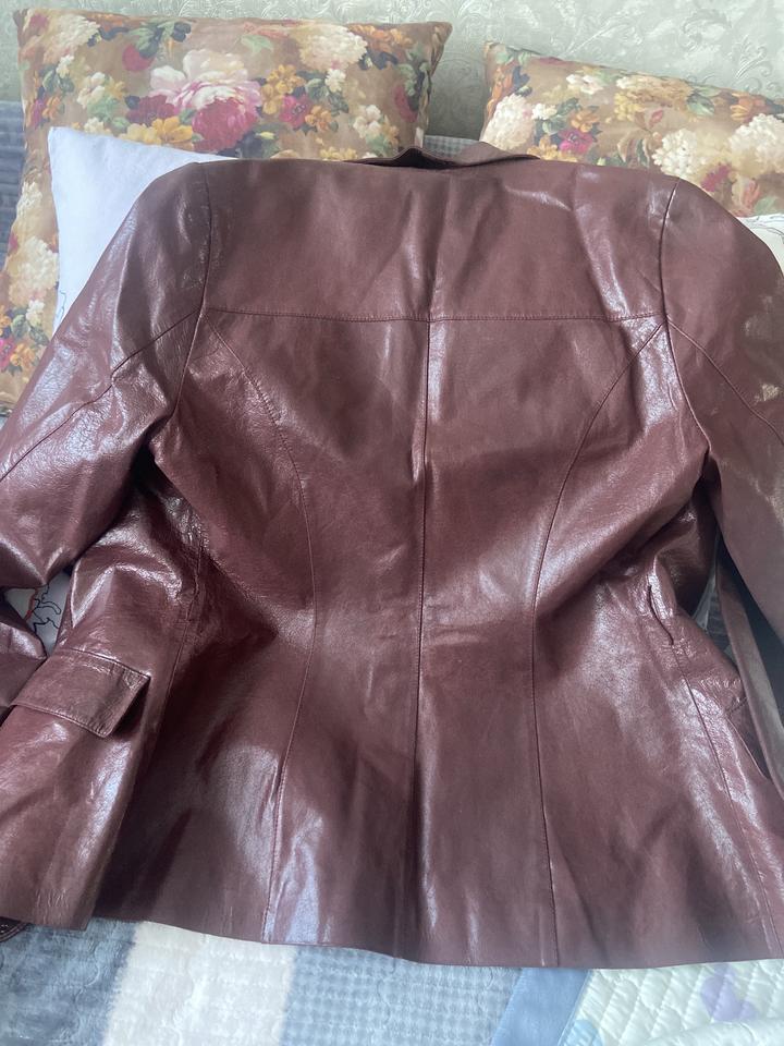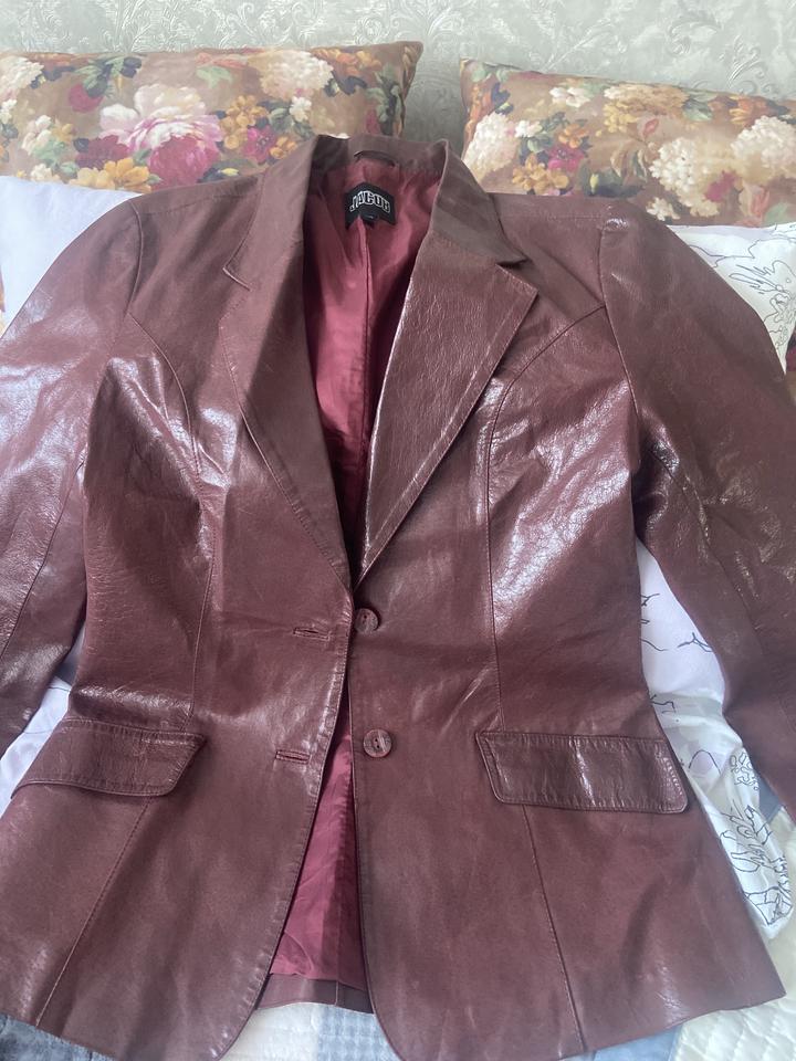 кожаный пиджак в красивом винном цвете. был давно привезен с Америки. почти не носила . немного не по размеру. на бирке м , но по сути s Артикул: 208539