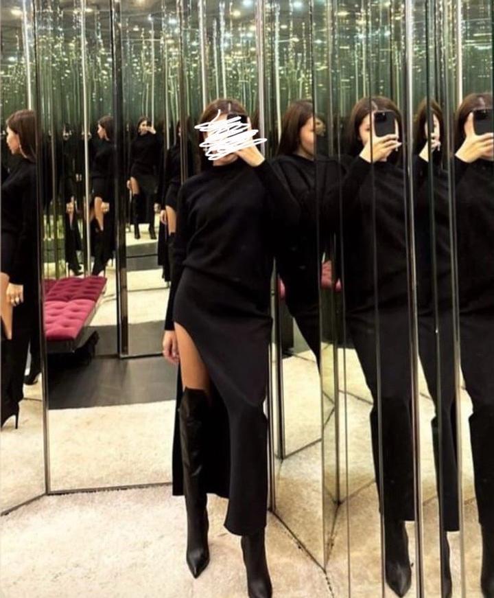Юбка в размере S с акцентным вырезом от бедра. Очень эффектная вещь для ярких выходов. Юбка новая Артикул: 208264