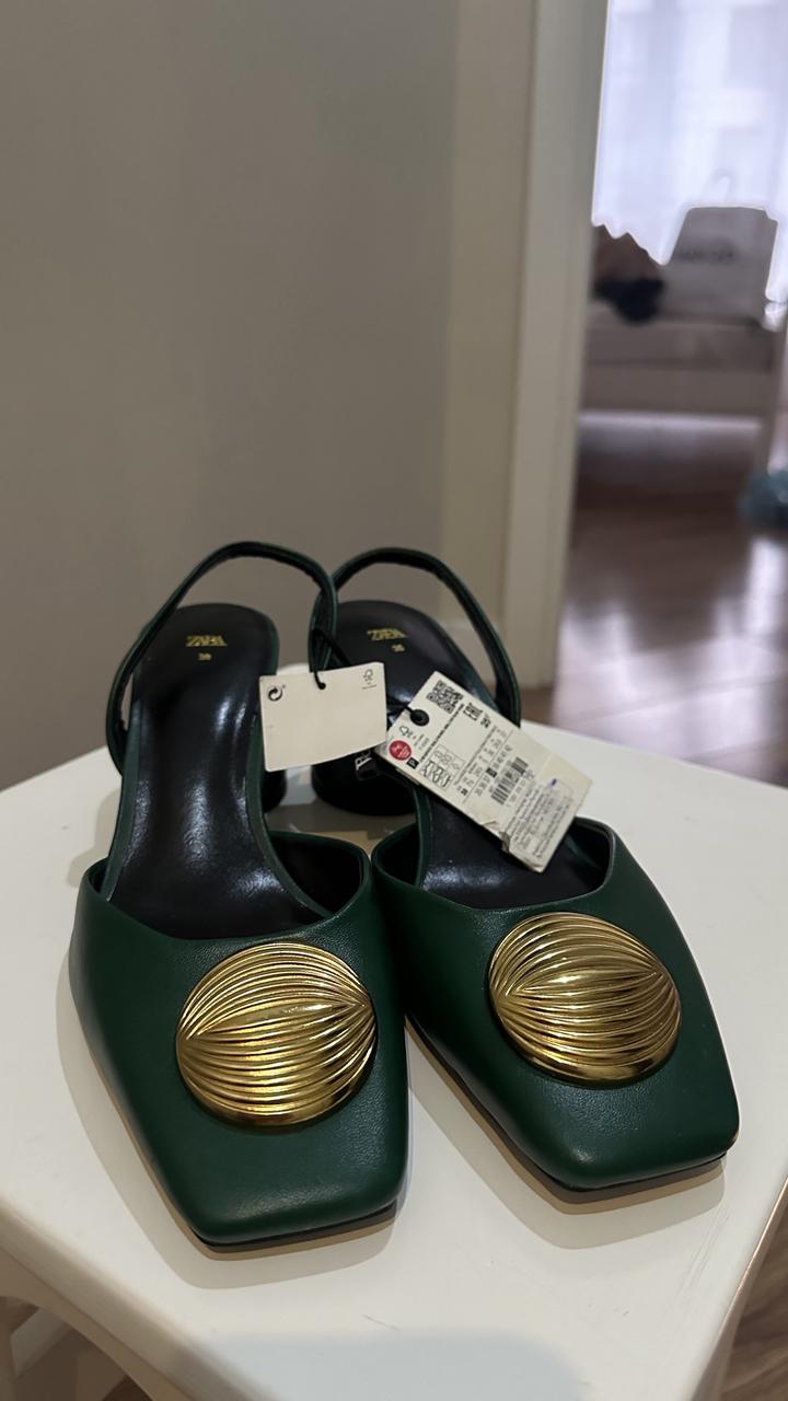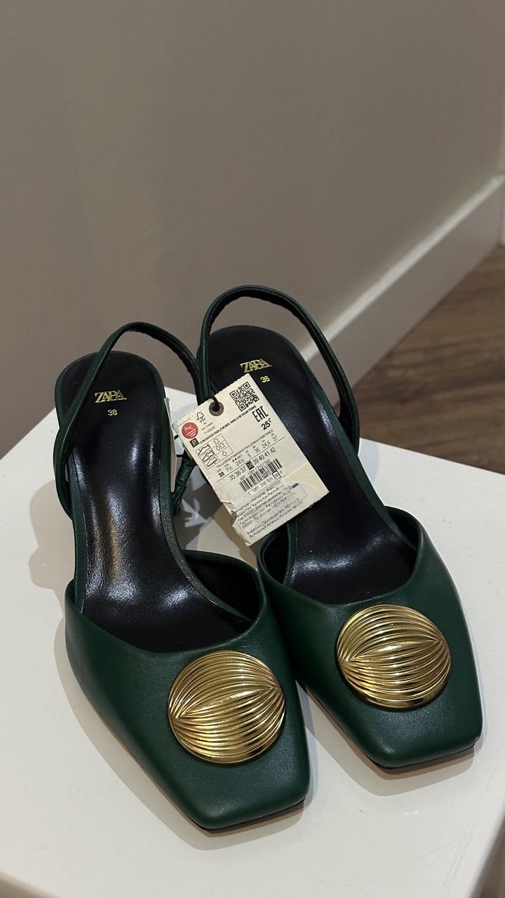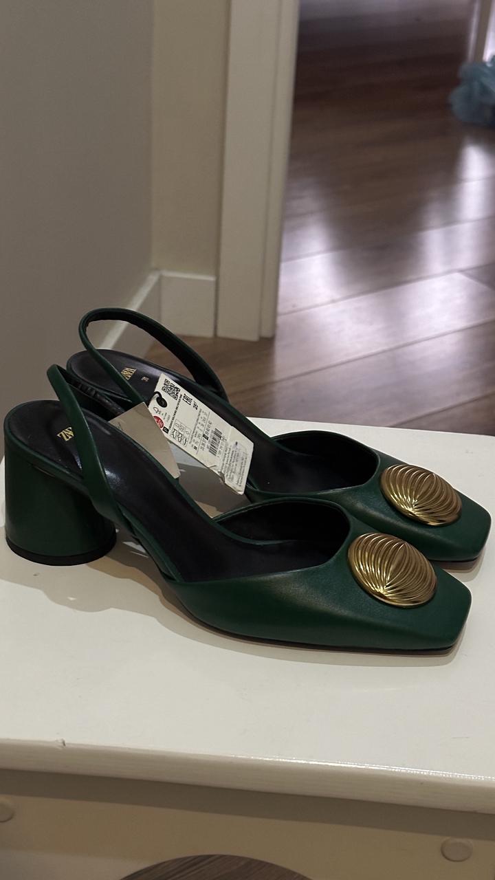 очень красивые туфли Zara из натуральной кожи в 38 размере. Цвет богатый зеленый. Абсолютно новые. Артикул: 211627