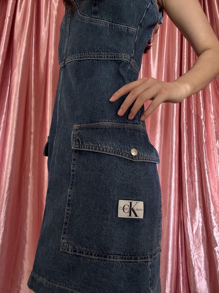 Джинсовое мини-платье Calvin Klein Jeans. В хорошем состоянии, носила 2-3 раза. Размер S, на М подойдет. Артикул: 214623