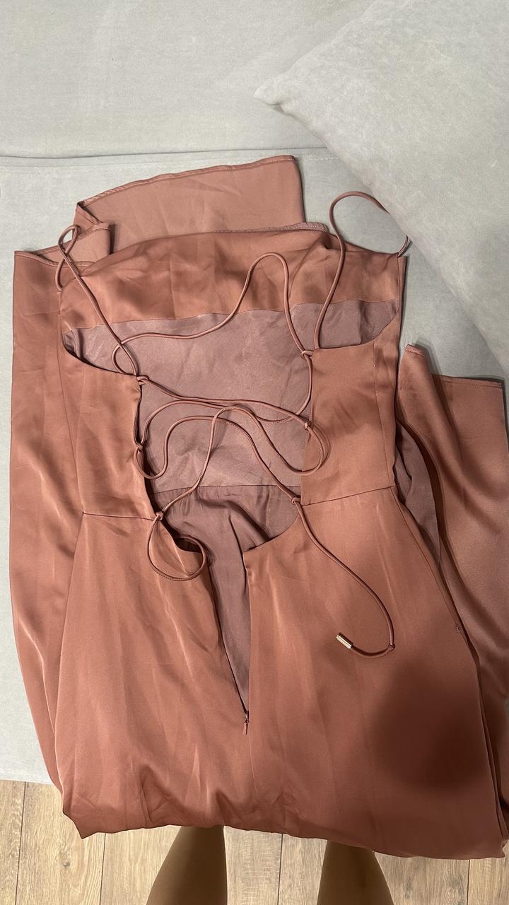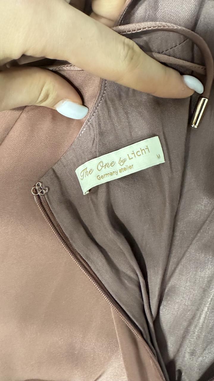 Атласное платье грязно розового цвета с драпированным вырезом на бретелях от бренда Lichi с корсетом сзади. можно контролировать талию и в районе груди. в продаже этих платьев уже нет. Размер М. Мне он стал большой, видно по фото возле зеркала. Новый, надевала 1 раз. Артикул: 215360