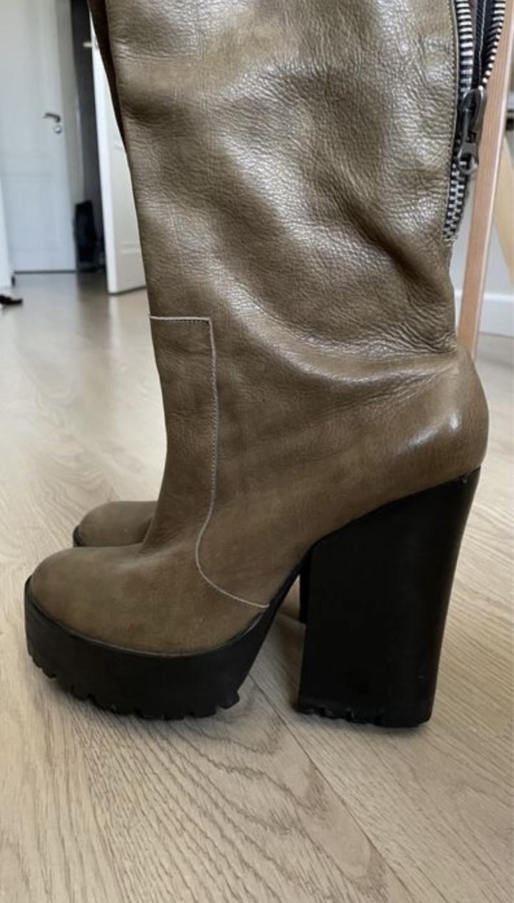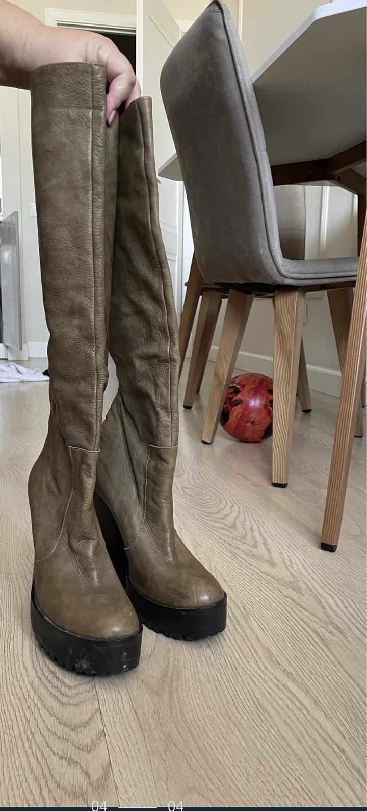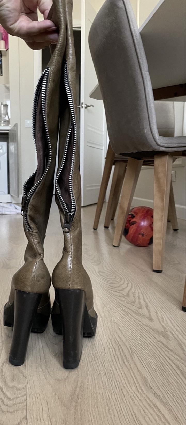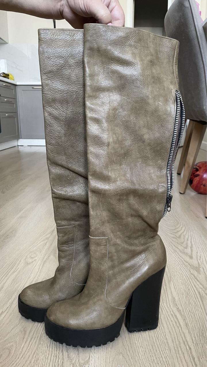 Продам сапоги из натуральной кожи . Сшитые на заказ для показа Айнур Турисбек. Очень удобная колодка . Надеты 3 раза . Размер 39-40 Артикул: 216350