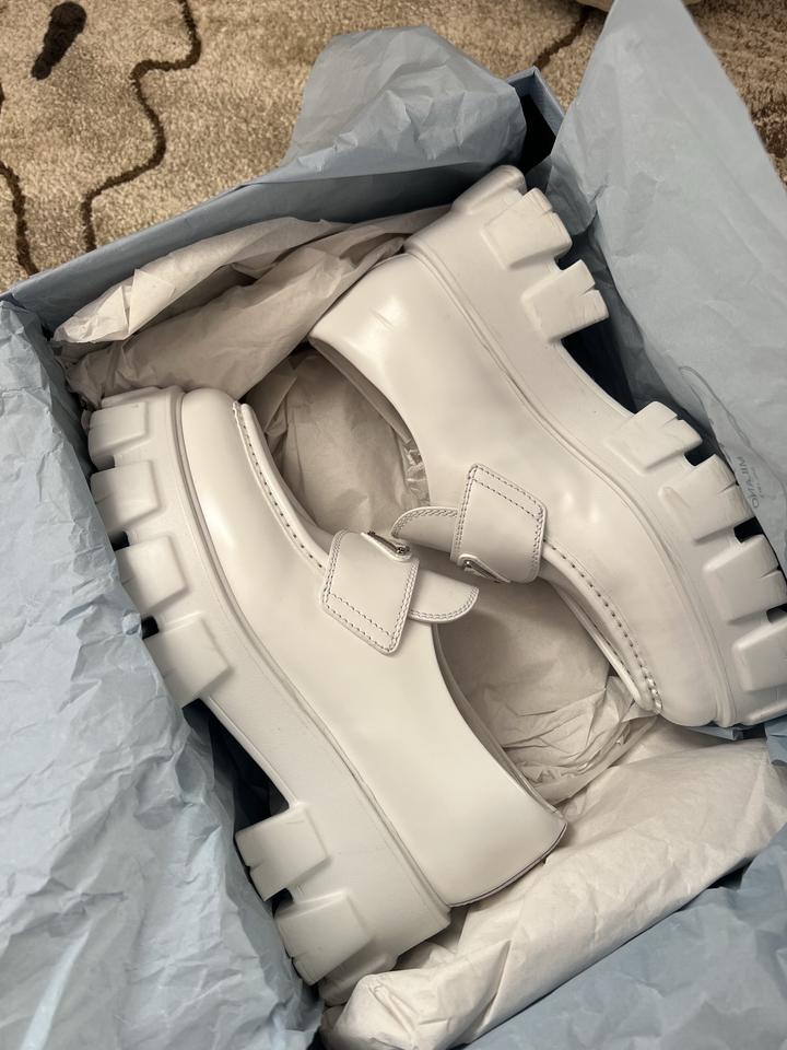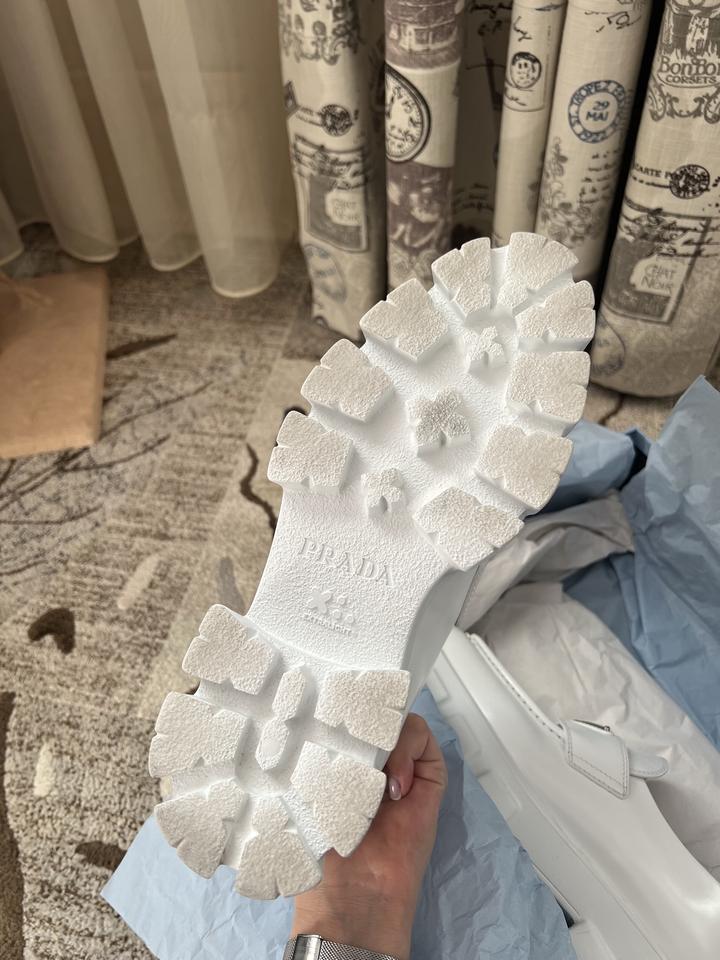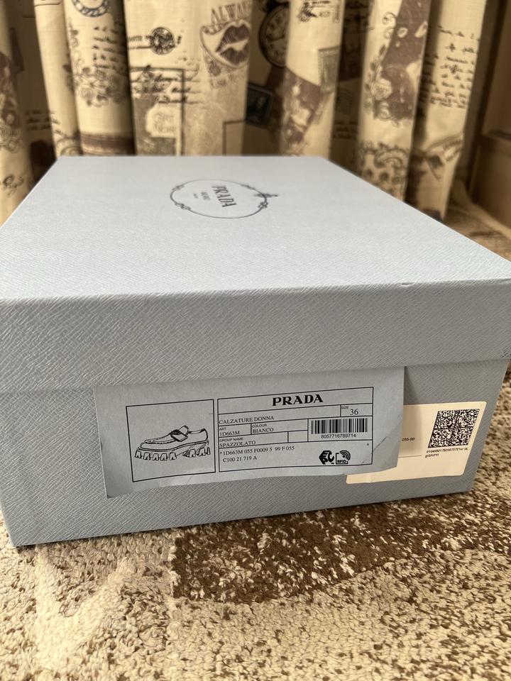 Лоферы Prada в белом цвете, не подошел размер, обувала два раза, слишком большие оказались. Покупались в Москве, полный комплект бутика Артикул: 217169