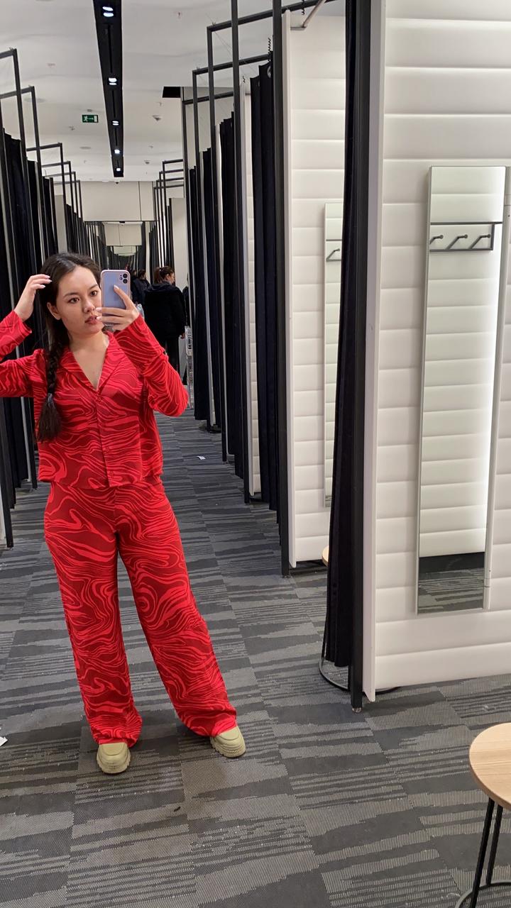 Рубашка размер S, низ размер 38 (44) Мой рост 166, посадка брюк шикарная. Одевала 1 раз, кто любит быть не в тени для вас 😉 Артикул: 223768