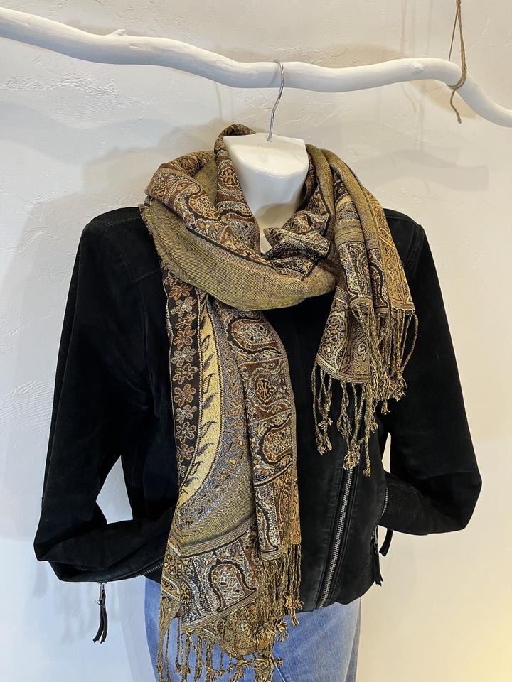 Пашмина. В составе кашемир с шелком, люрексовая нить.Рисунок двусторонний. Длина -170 см.Новая. Артикул: 224342