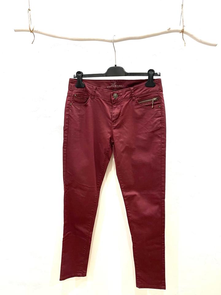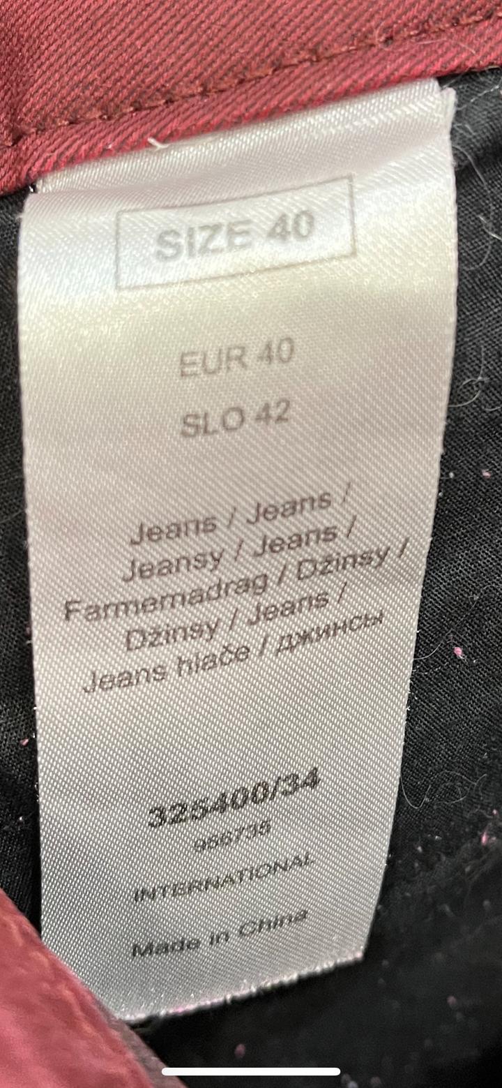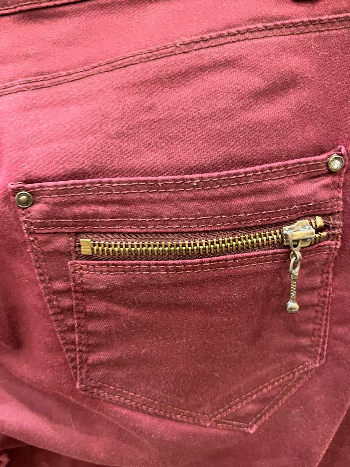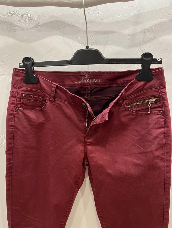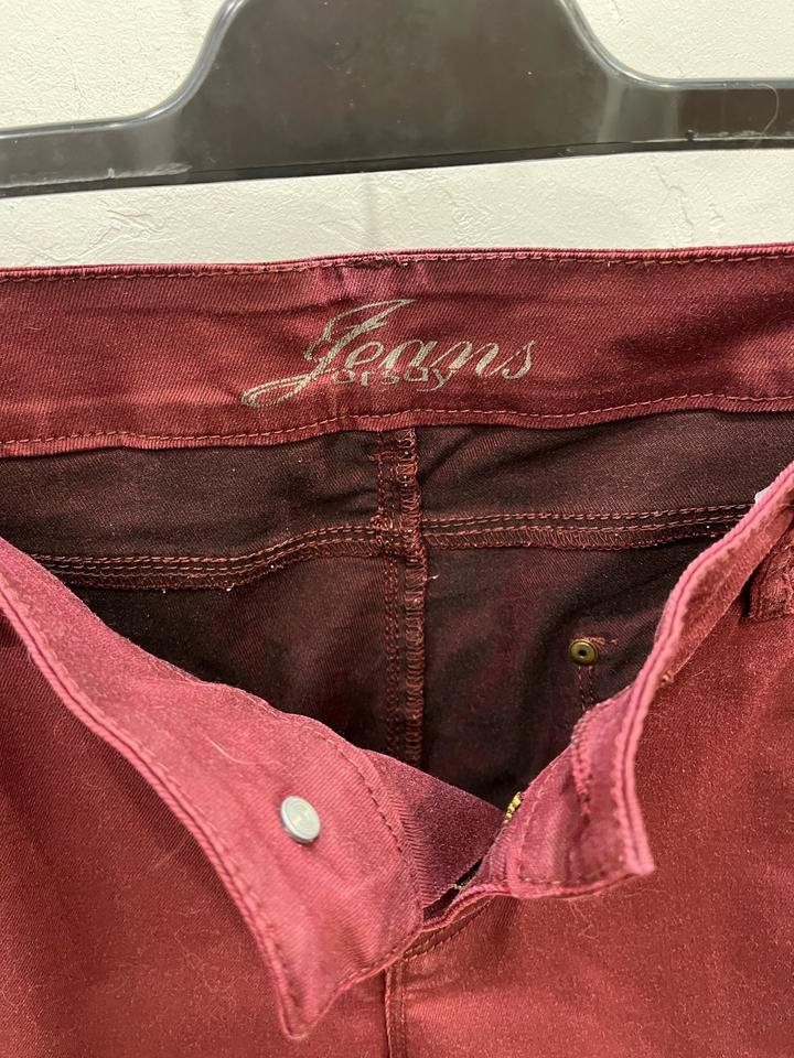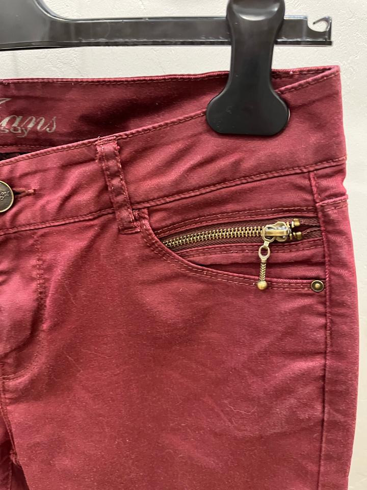 Джинсы скини,ткань похожа на плащёвку, тянется. Цвет бордовый. Размер eur 40. Ширина по поясу-42 см, длина по боковому шву-102 см.Носила несколько раз. Артикул: 224707