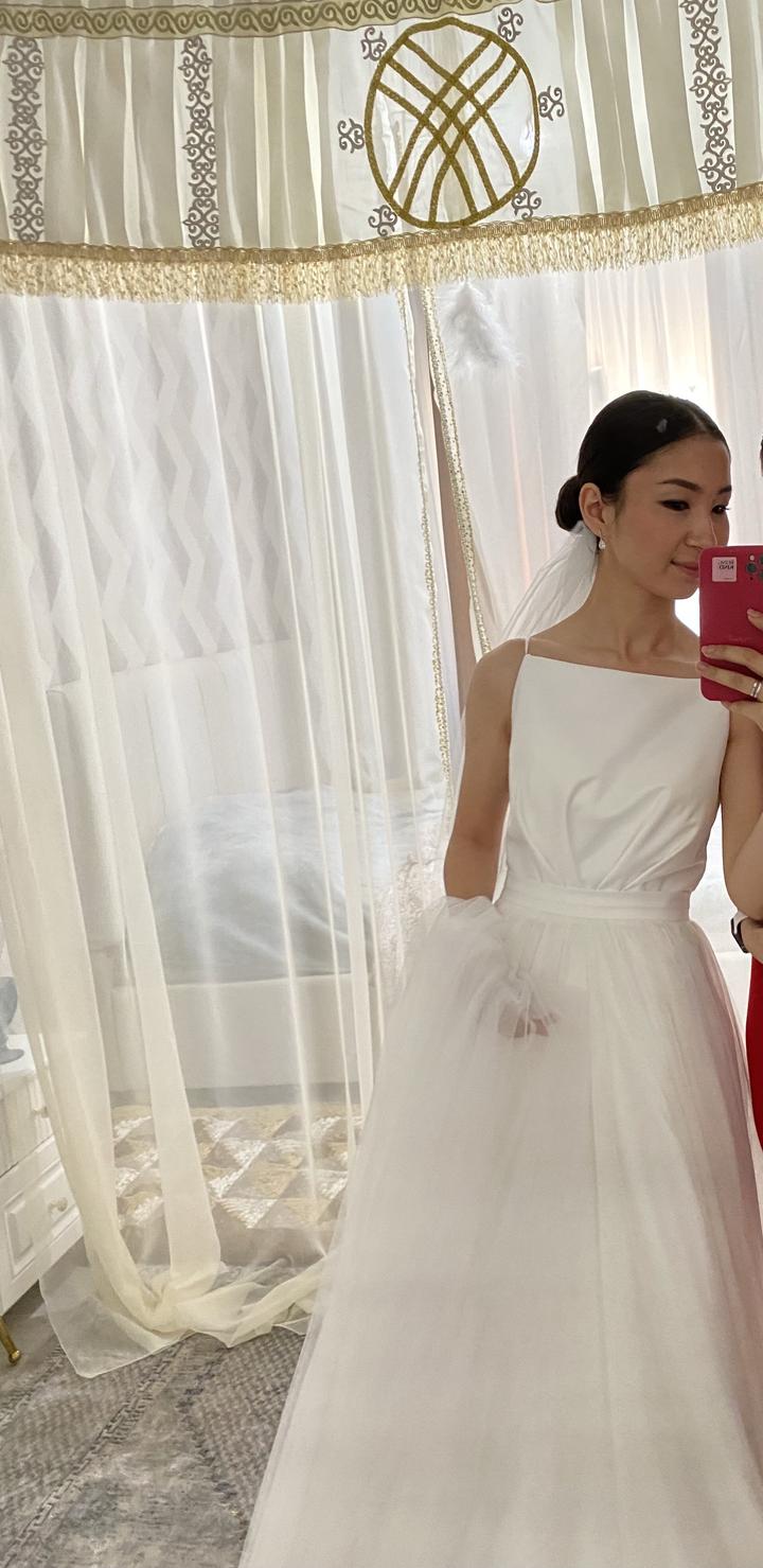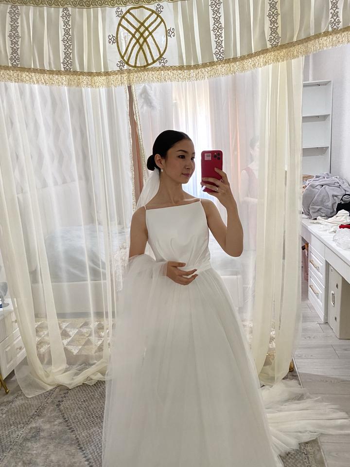 Европейское платье в стиле минимализм; единственное в кз, привезли в магазин и я сразу забрала(никто не мерил кроме меня); - Одевала на собственную свадьбу один раз, сейчас после химчистки стоит упакованная; - Размер XS-S, при желании можно подогнать до М, мой рост 161, подойдёт для девушек 155-167см; - стоимость 90тыс. (покупала намного дороже) кольцо 01 в комплекте, в подарок фата из европейской сетки и украшения для головы. - Примерить можно в Алматы Артикул: 223844