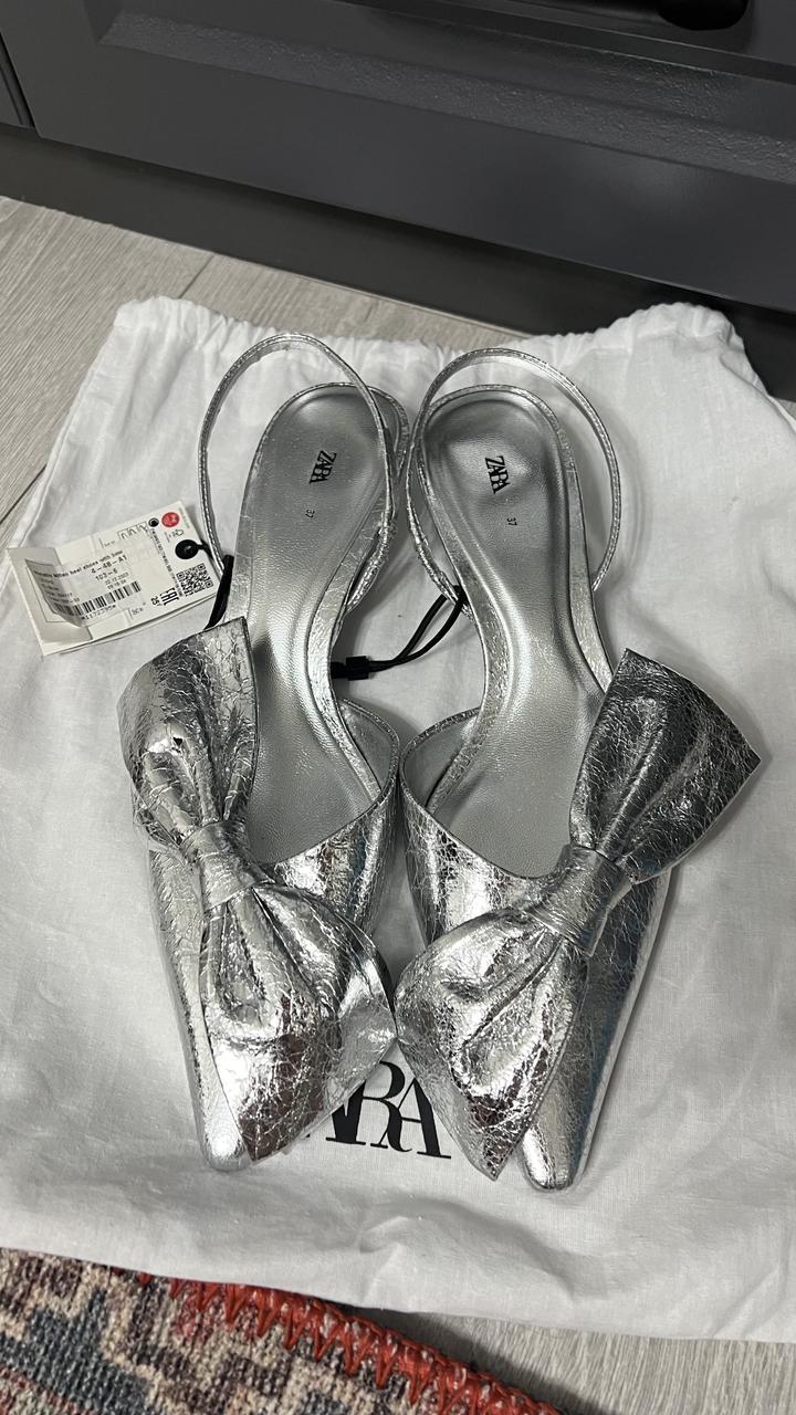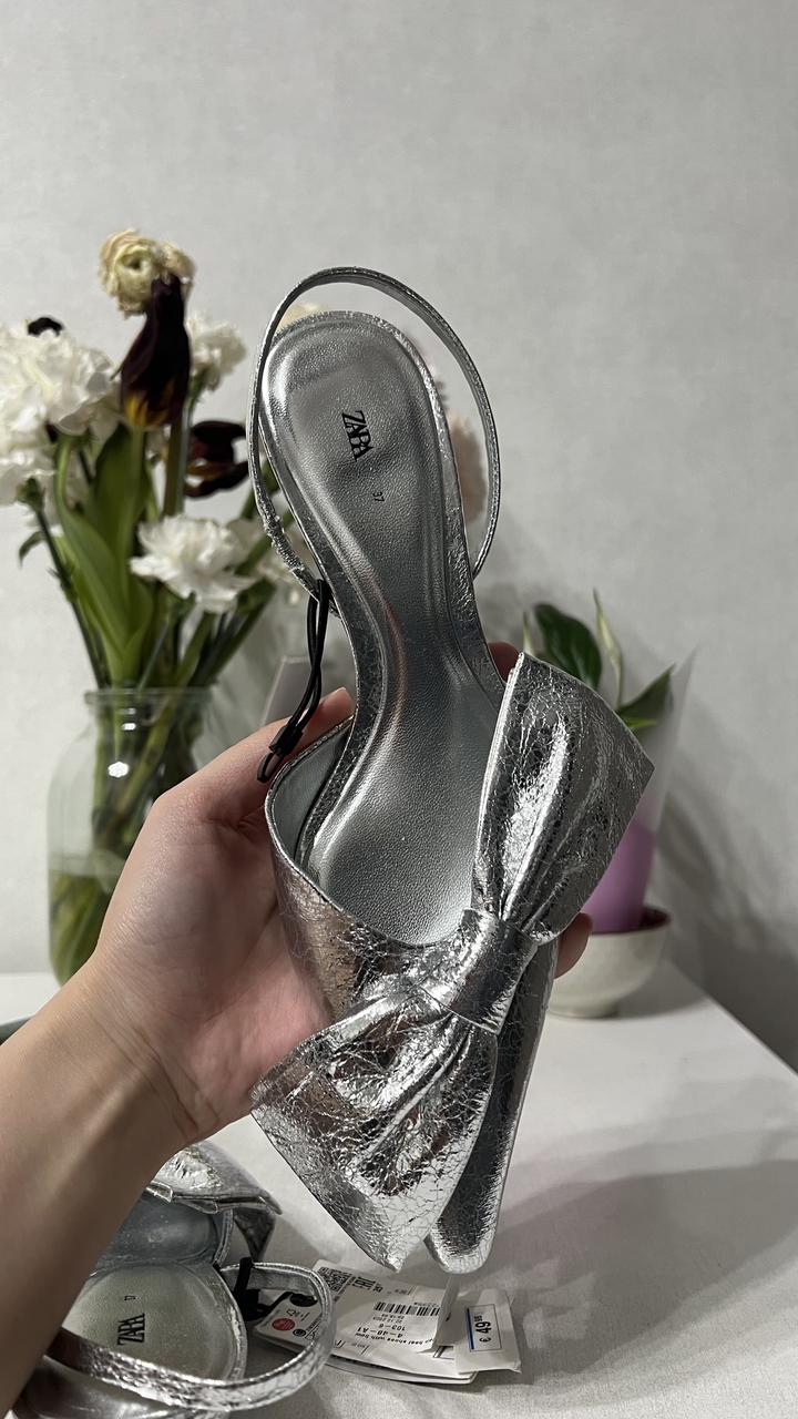 Мюли Zara серебристые новые. Элегантные и стильные, с удобным каблуком. Лёгкие, аккуратные, красиво смотрятся на ноге. Идеальный вариант для корпоратива, праздника или вечернего выхода. Артикул: 225013
