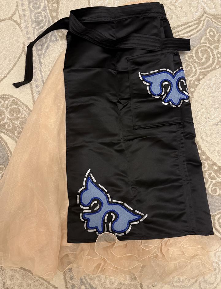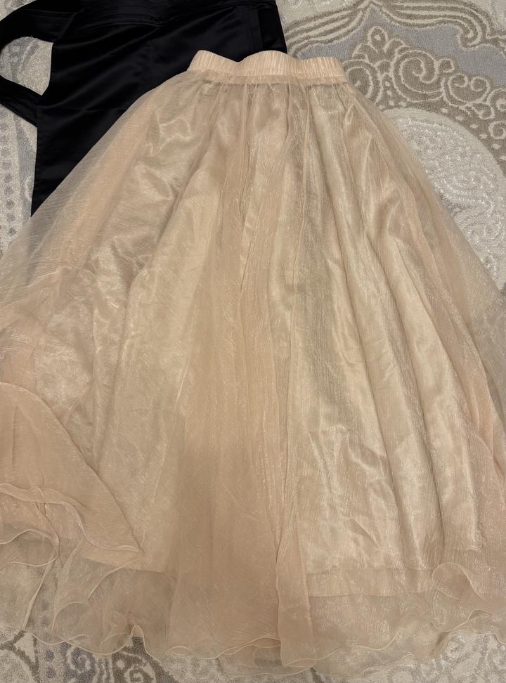Длинная бежевая юбка с баской с орнаментом в черном цвете, длина юбки макси на рост 165, черная баска французская длина, не надевался , можно отдельно носить. Артикул: 227345