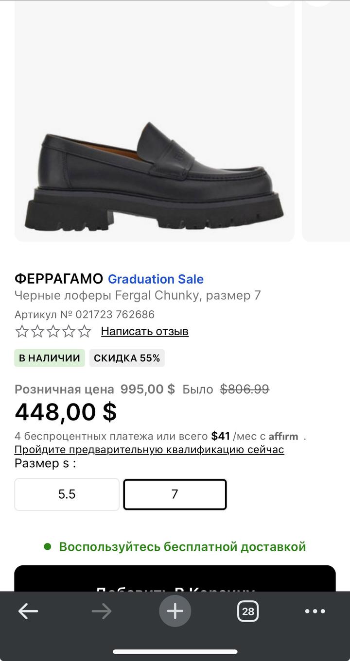 Лоферы Феррагамо абсолютно новые. Производство Италия. Не подошел размер. Артикул: 230731