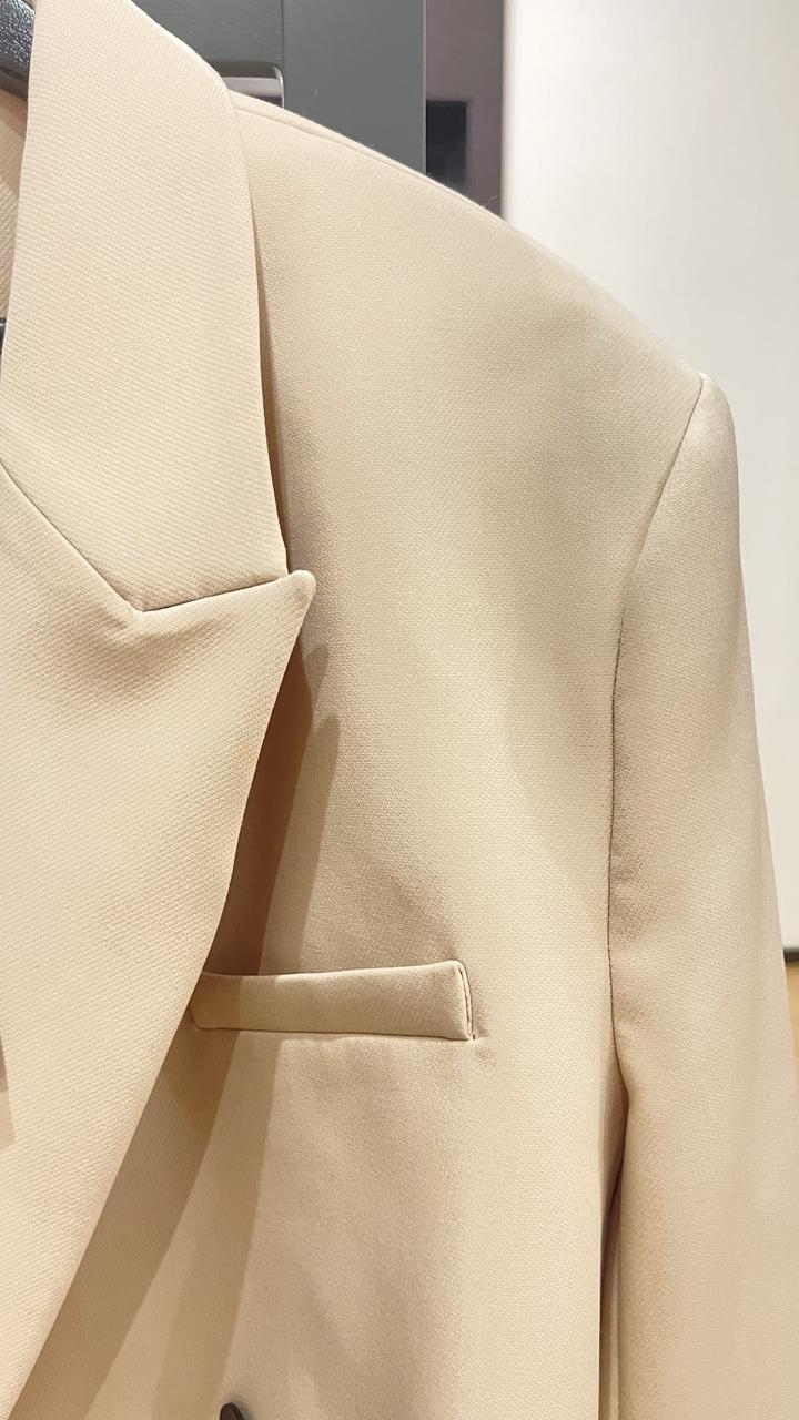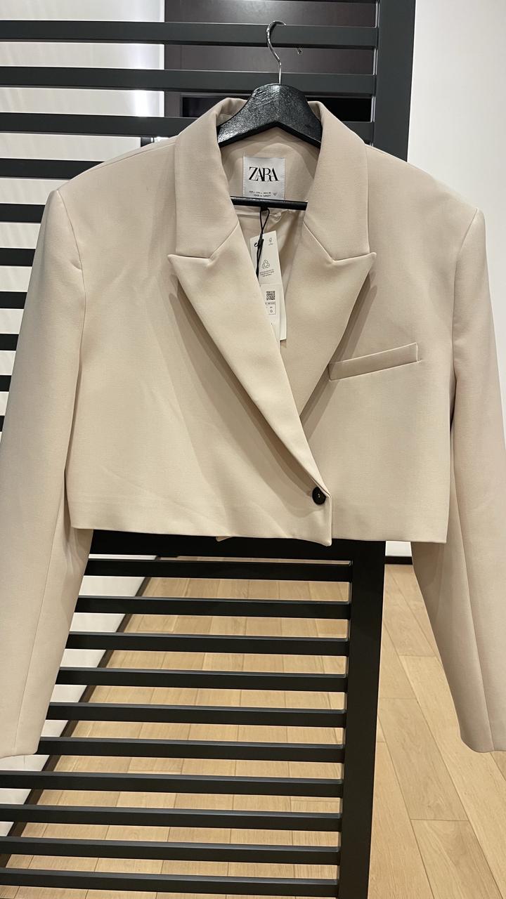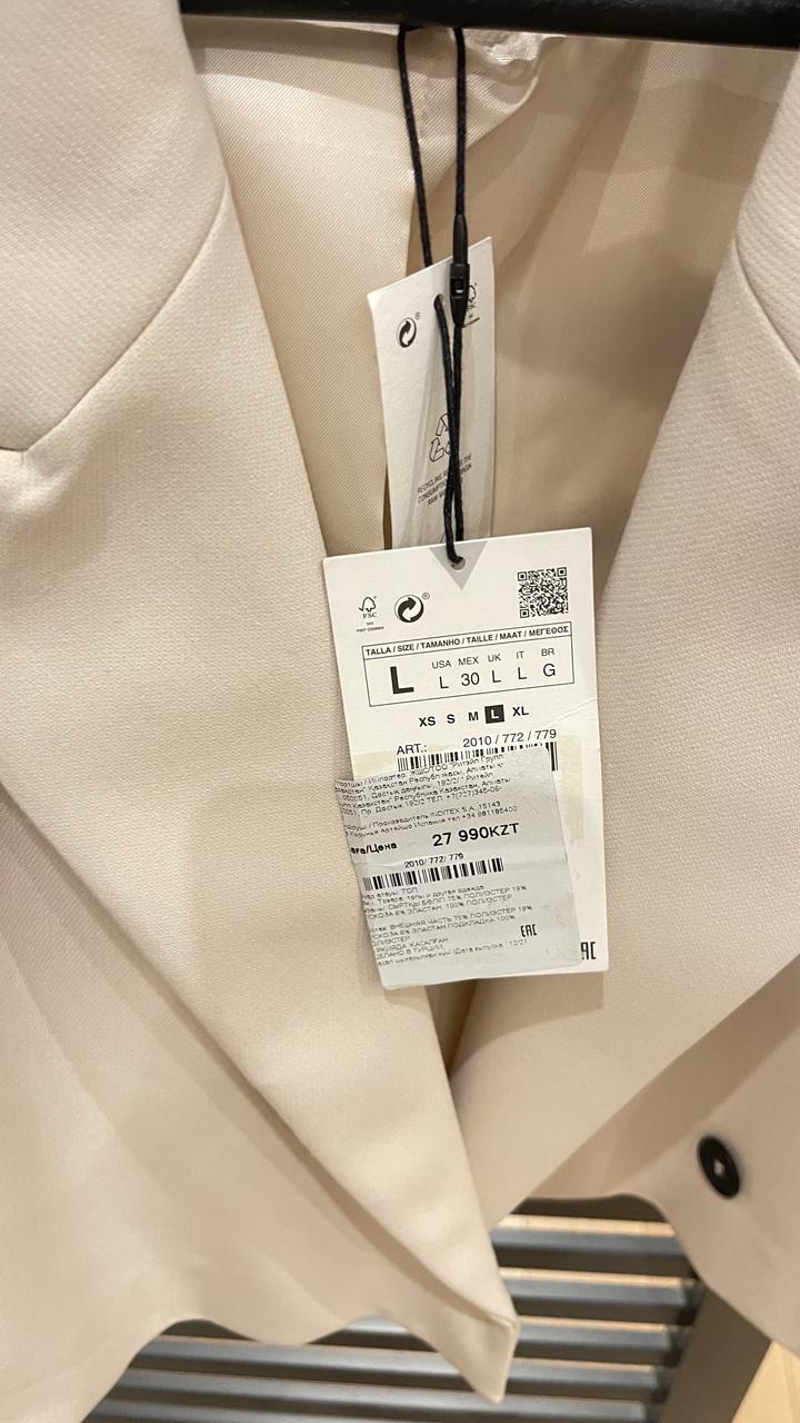 Короткий пиджак бежевого цвета, новый, слегка с широкими плечами, размер L Артикул: 232064