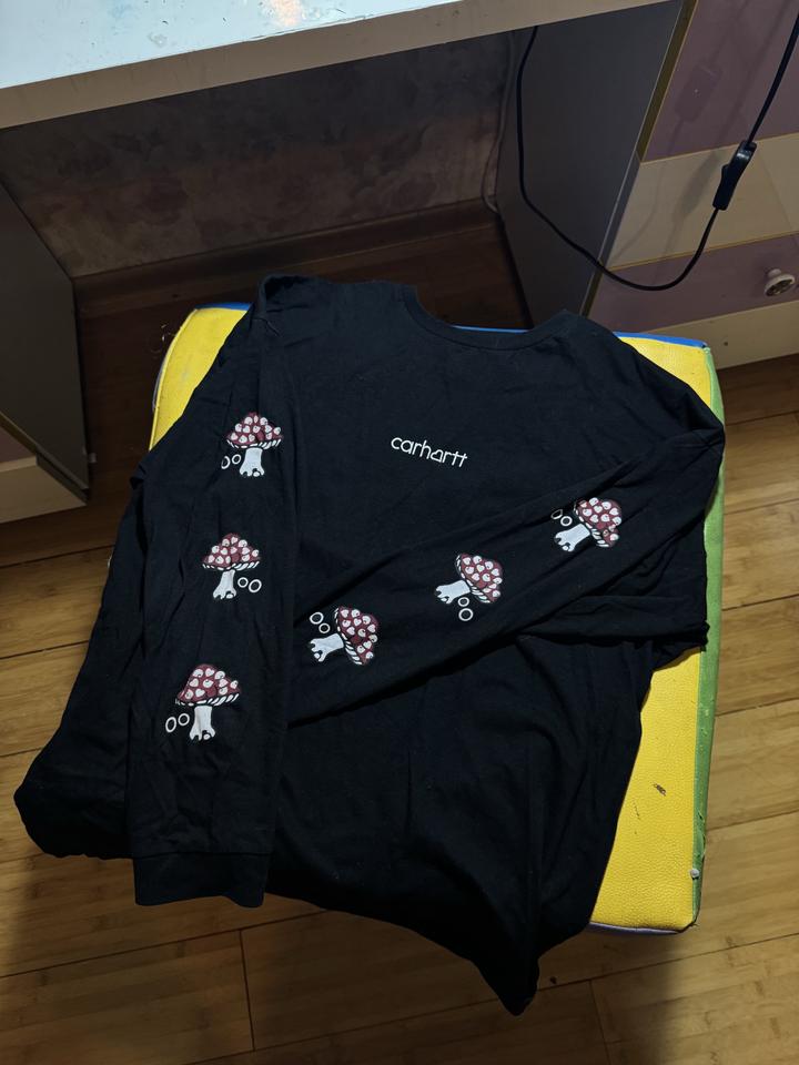 Лонгслив Кархарт унисекс, почти не носился, размер XS, но больше как оверсайз, подойдет на S-M женский. В отличном состоянии, принт не стерся, покупали в all starts за 22.000 Артикул: 232549