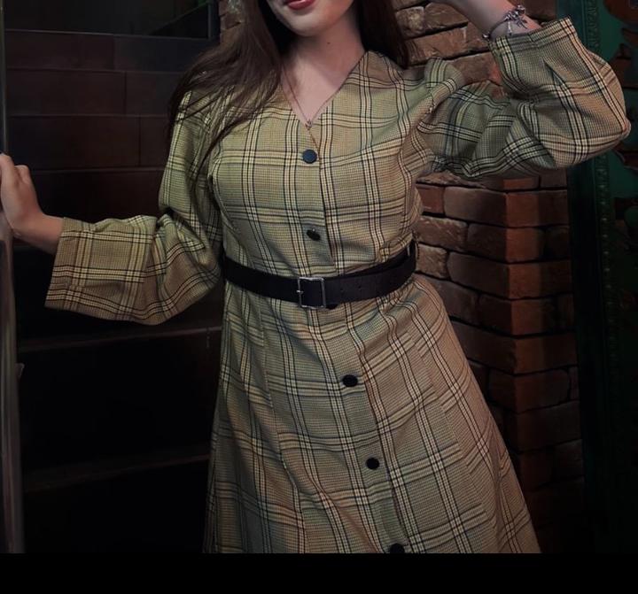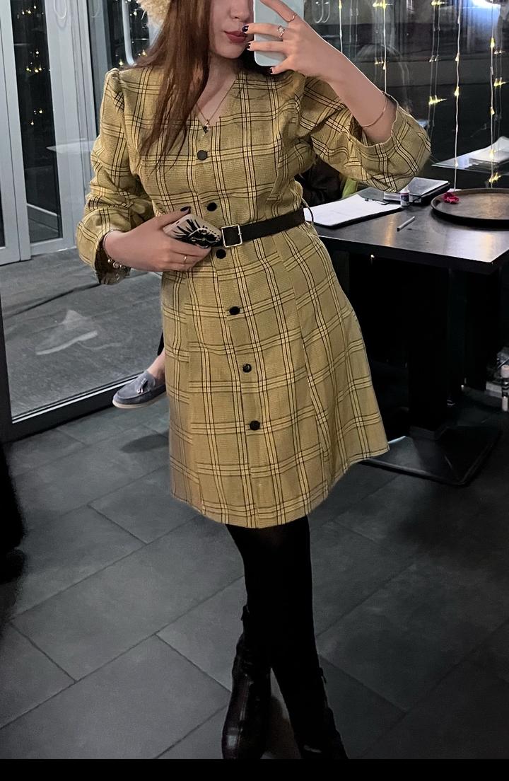 Женское платье в клетку. Идет вместе с ремнем. Платье на замке, пуговицы обманки для декора Артикул: 234062