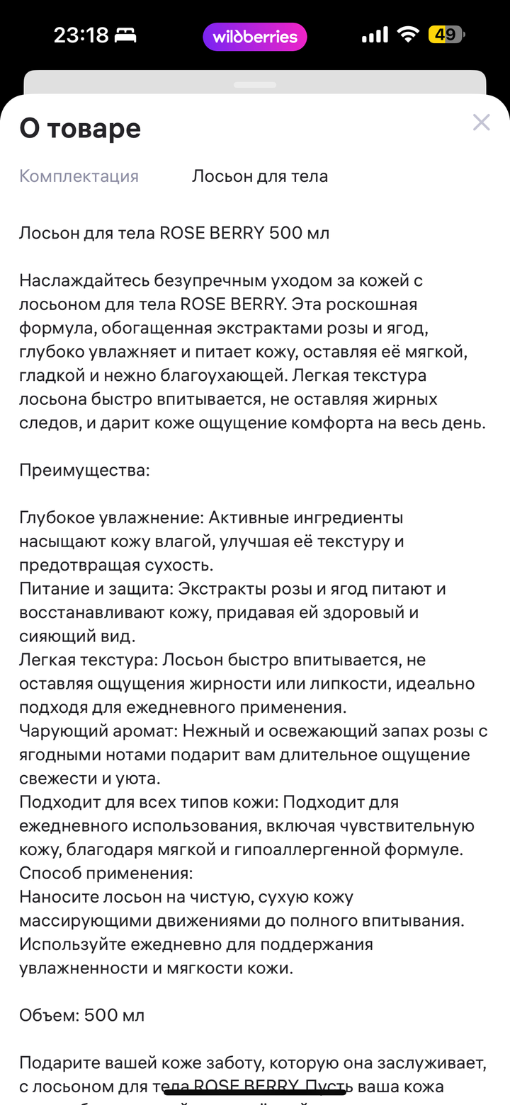 🧴 *ROSE BERRY Body Lotion — 500 мл* 🌸 Нежность, аромат и увлажнение в одном флаконе* 🔥 *ЛИКВИДАЦИЯ! Переход в онлайн — скидки!* 🌿 *Описание*: Погрузитесь в ароматную заботу с *лосьоном для тела ROSE BERRY*: ✔️ Глубоко увлажняет и питает кожу ✔️ Содержит экстракты розы и ягод ✔️ Делает кожу мягкой, бархатистой и сияющей ✔️ Быстро впитывается — без липкости и жирности ✔️ Подходит даже для чувствительной кожи 💐 *Аромат*: Легкий, цветочно-ягодный, с нотками свежести 🌷🍓 📌 *Как использовать*: Наносите на чистую, сухую кожу после душа. Массируйте до полного впитывания. 🌞 Подходит для ежедневного применения. 🚚 Быстрая доставка по Казахстану 🛒 Последние флаконы — не упусти! #RoseBerry #лосьондлятела #уходзателом #ароматныйуход #красотакаждыйдень #уходзасобой #skincarekz #уходдляженщин #ликвидациямaгазина Артикул: 234821