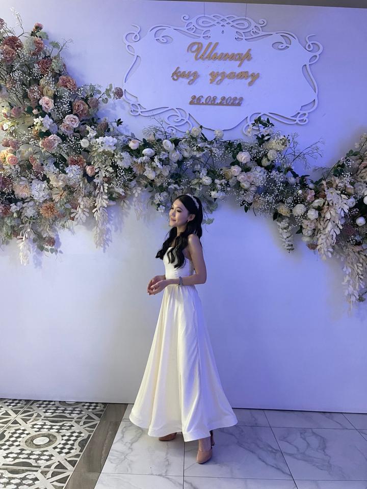 Сшито на заказ. Надевала 2 раза. Длина до пола, подходит на рост 160 см. Цвет — айвори, смотрится очень элегантно и утончённо. Сзади регулируется как корсет — можно подогнать под фигуру (размер S/XS). Если не носите открытые платья — есть лёгкая накидка (продаётся отдельно за 3000 тг). Идеально подойдёт на выпускной, мероприятие или фотосессию. Артикул: 235509