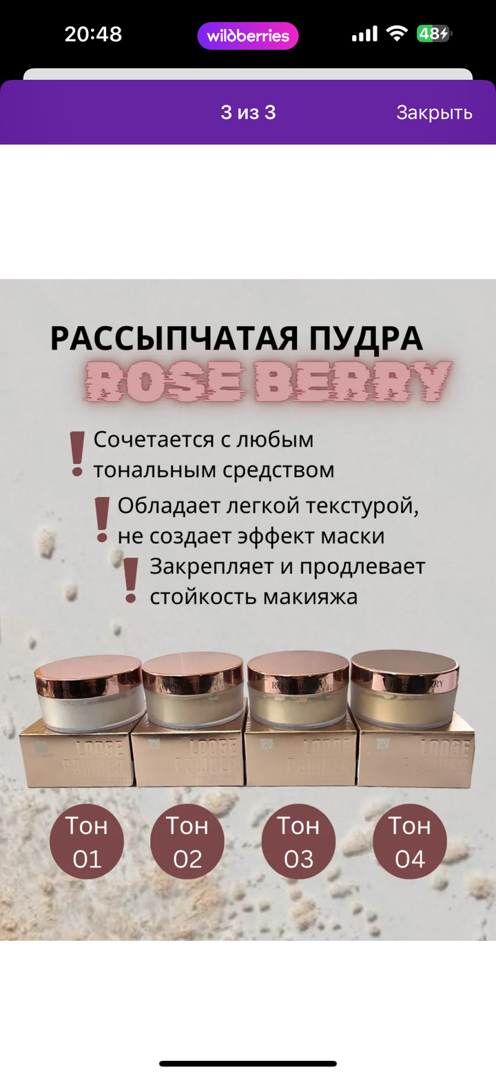Пудры рассыпчатые ROSE BERRY ЛИКВИДАЦИЯ ТОВАРОВ-