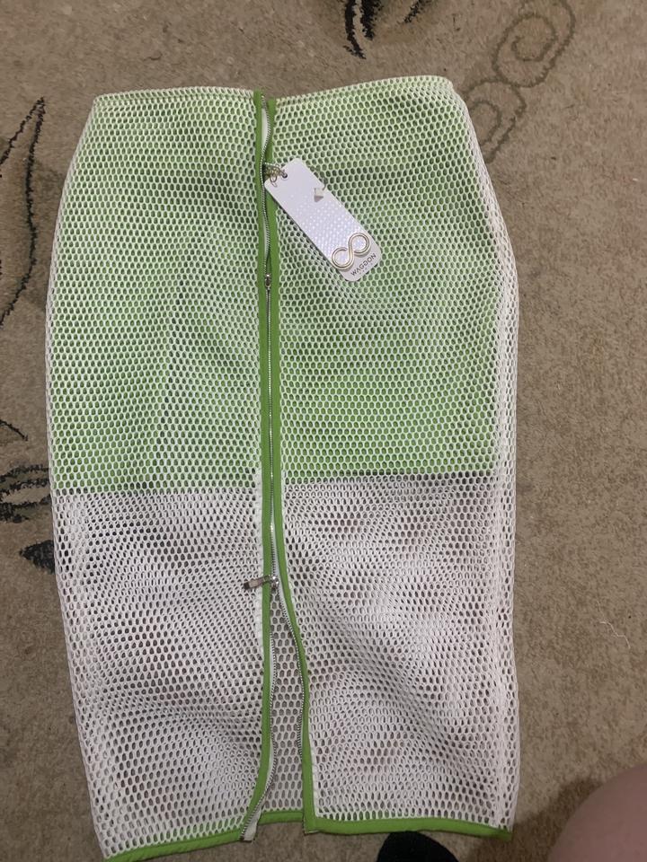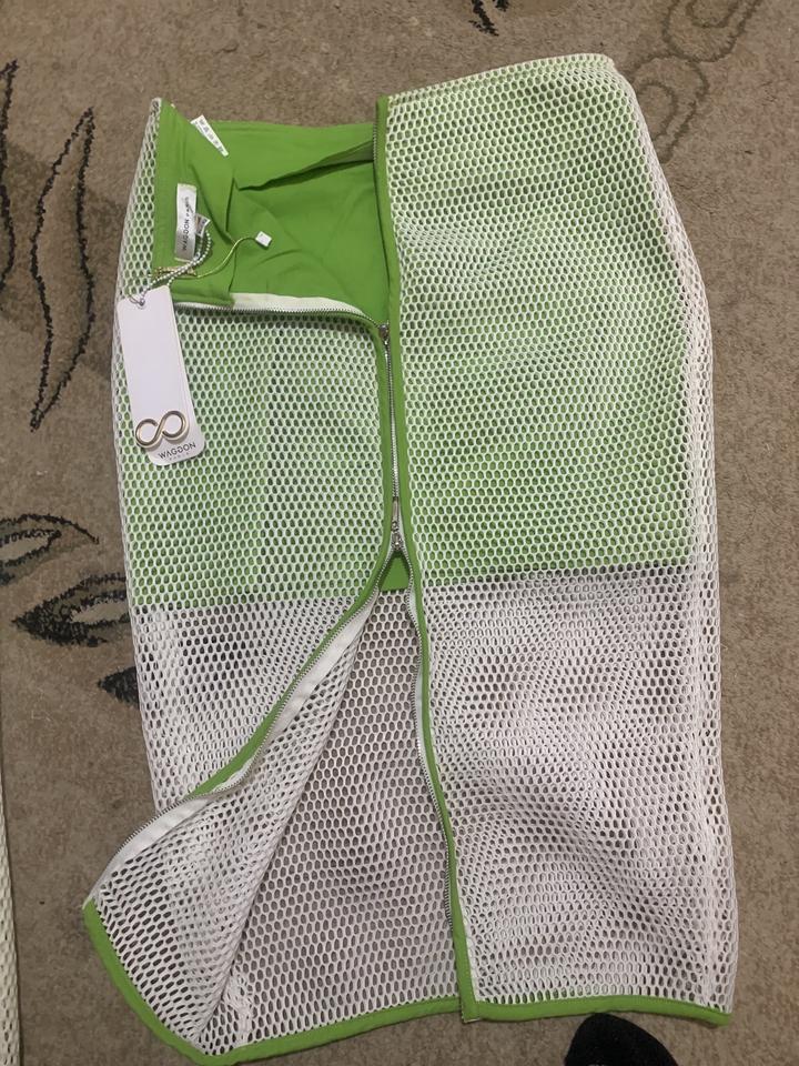 необычная юбка, снаружи белая сетка, внутри зеленый подклад, длина ниже колен Артикул: 237530