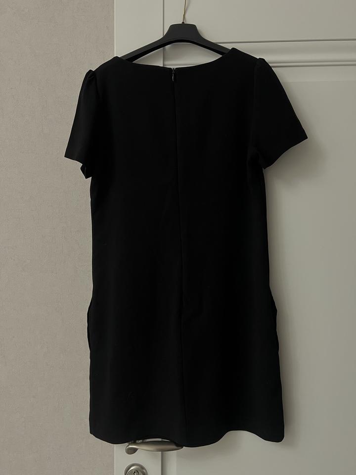 Платье черное прямого кроя с коротким рукавом с карманами Размер М Артикул: 240574